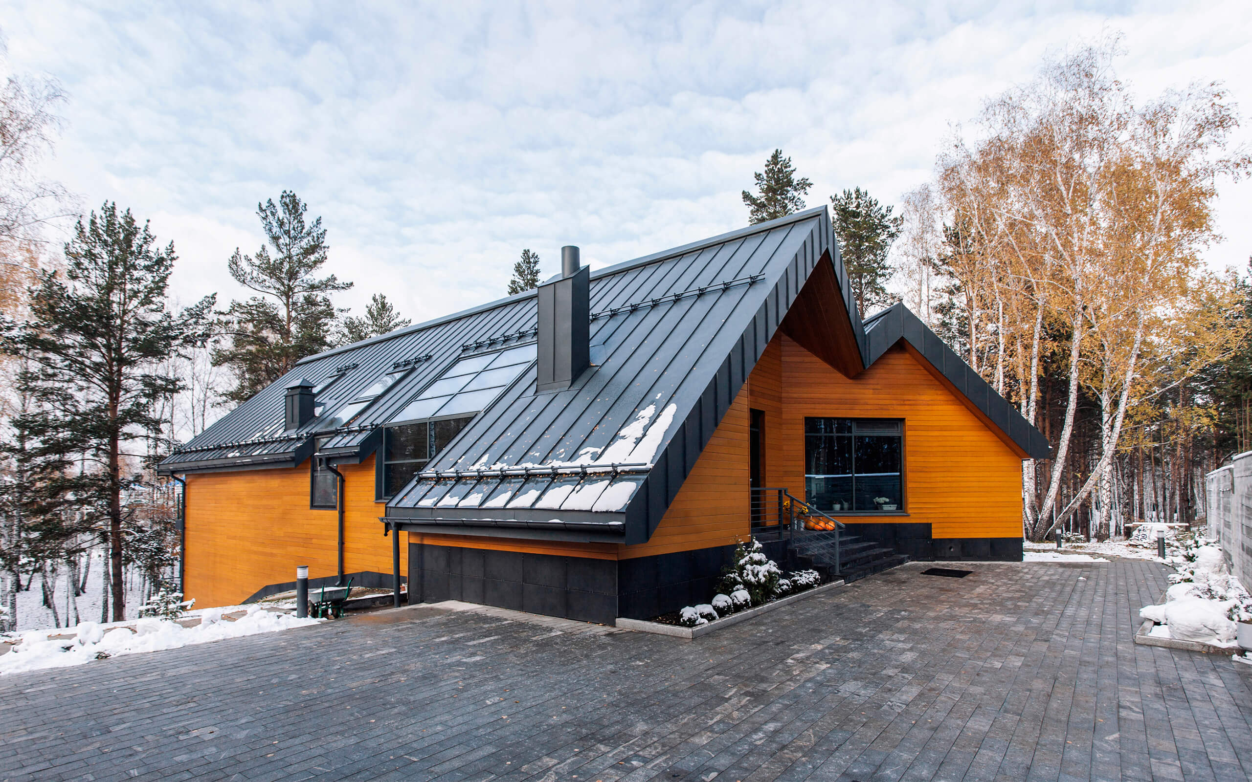 un techo a dos aguas característico con una pendiente pronunciada, pero hay proyectos con un techo a dos aguas roto;