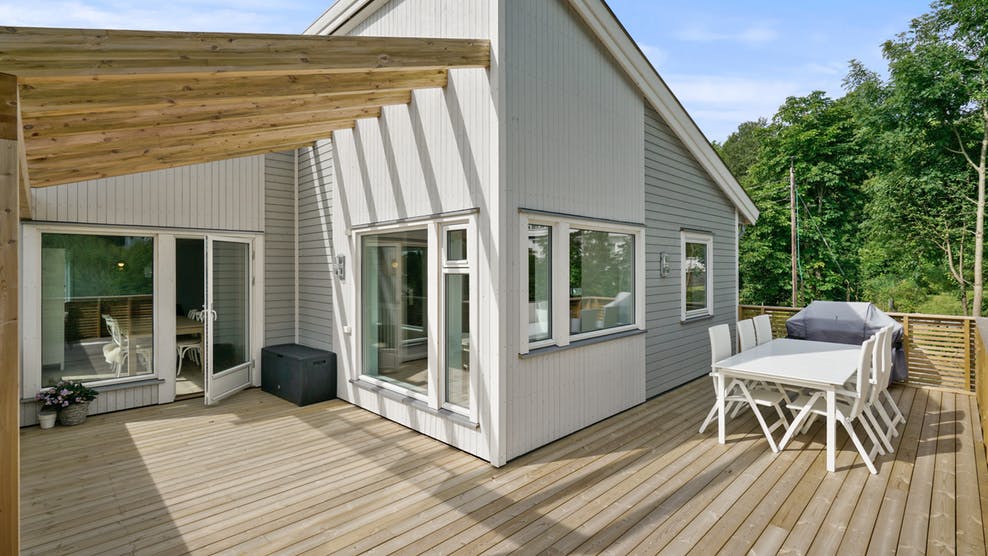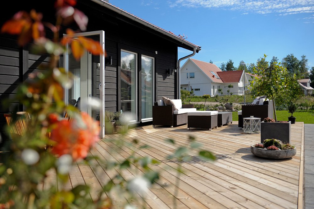 La decoración exterior de cualquier edificio privado en estilo escandinavo es modesta y moderada. Se excluye cualquier enfoque de alta tecnología e innovaciones artísticas y decorativas. Además de en interiores, la armonía absoluta del color, la calidad y la naturalidad de los materiales deben estar presentes. Para la construcción de casas de campo modernas, además de la viga habitual para los escandinavos, se utilizan estructuras de hormigón y ladrillos.