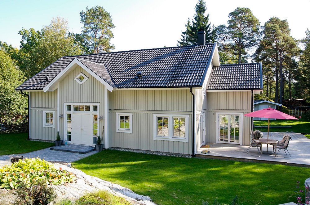 Los habitantes de la península escandinava para el revestimiento de fachadas utilizan principalmente madera natural, que se caracteriza por un procesamiento en bruto, pintado con 2-3 capas de pintura corporal. A veces se usa yeso. Puede decorar la parte delantera de la casa con cualquiera de los materiales mencionados anteriormente. La elección depende de las preferencias personales del propietario de la estructura, su apariencia final.