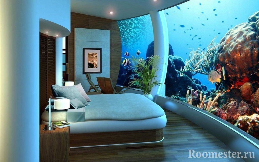 El reino submarino de un solo apartamento imita la atmósfera urbana de una ciudad moderna o paisajes naturales de montaña, paisajes en el espíritu del minimalismo japonés. Bajo el agua tienen toda una ciudad antigua con ruinas antiguas, grupos escultóricos, barcos hundidos.
