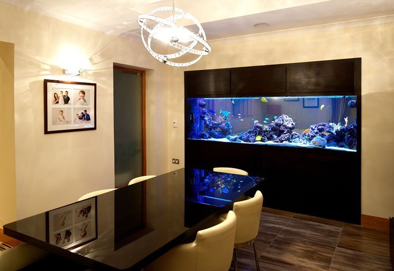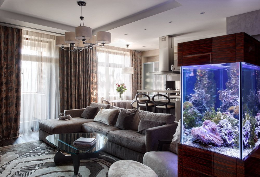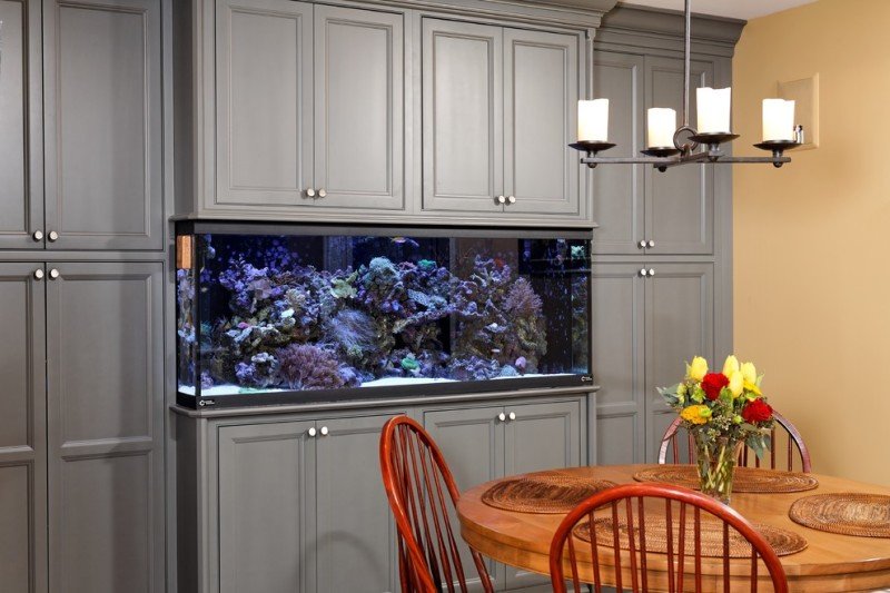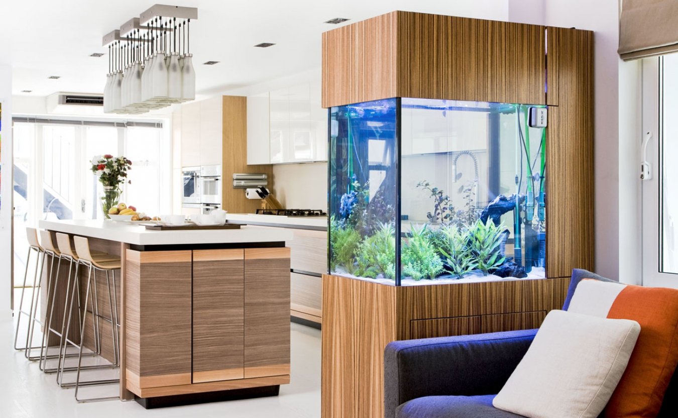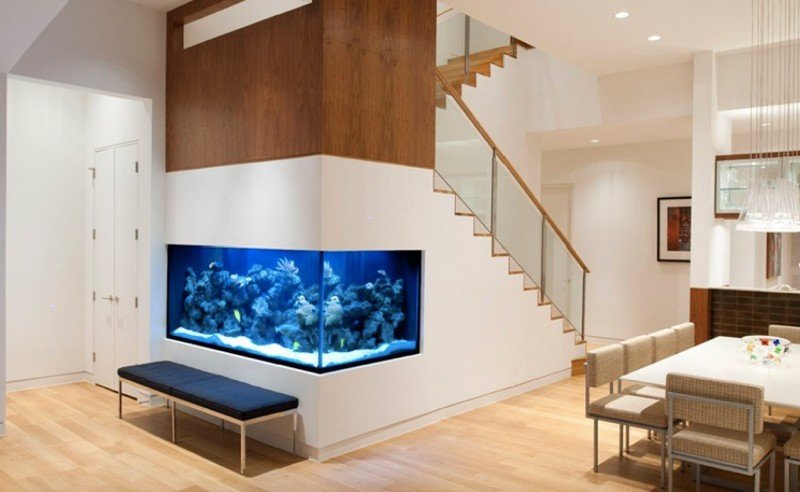 Una de las tendencias de la moda son los acuarios incorporados, que solían decorar los espacios de centros de negocios, restaurantes y oficinas exclusivamente. Ahora, con su ayuda, revitalizan el espacio de una vivienda, le dan una variedad única.