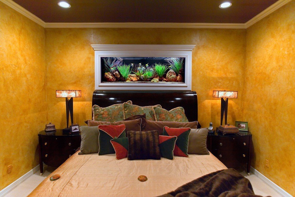 Desde el punto de vista del Feng Shui, un acuario en el dormitorio es inaceptable, porque introduce enfriamiento en la relación de los cónyuges, y el movimiento continuo de los peces aumenta el nerviosismo. El empleo excesivo, la limpieza prematura del tanque afectará la frescura de la atmósfera y la salud.