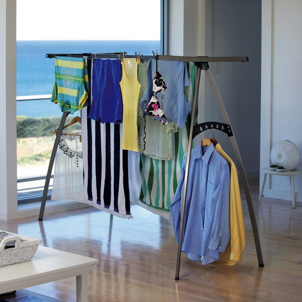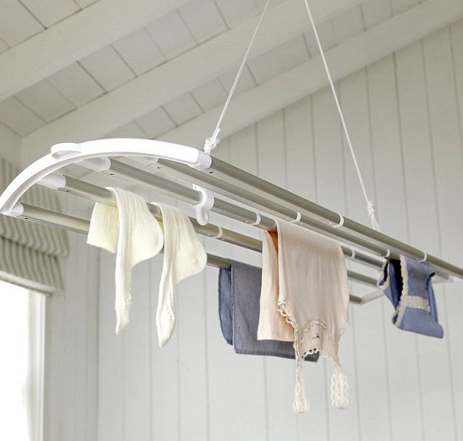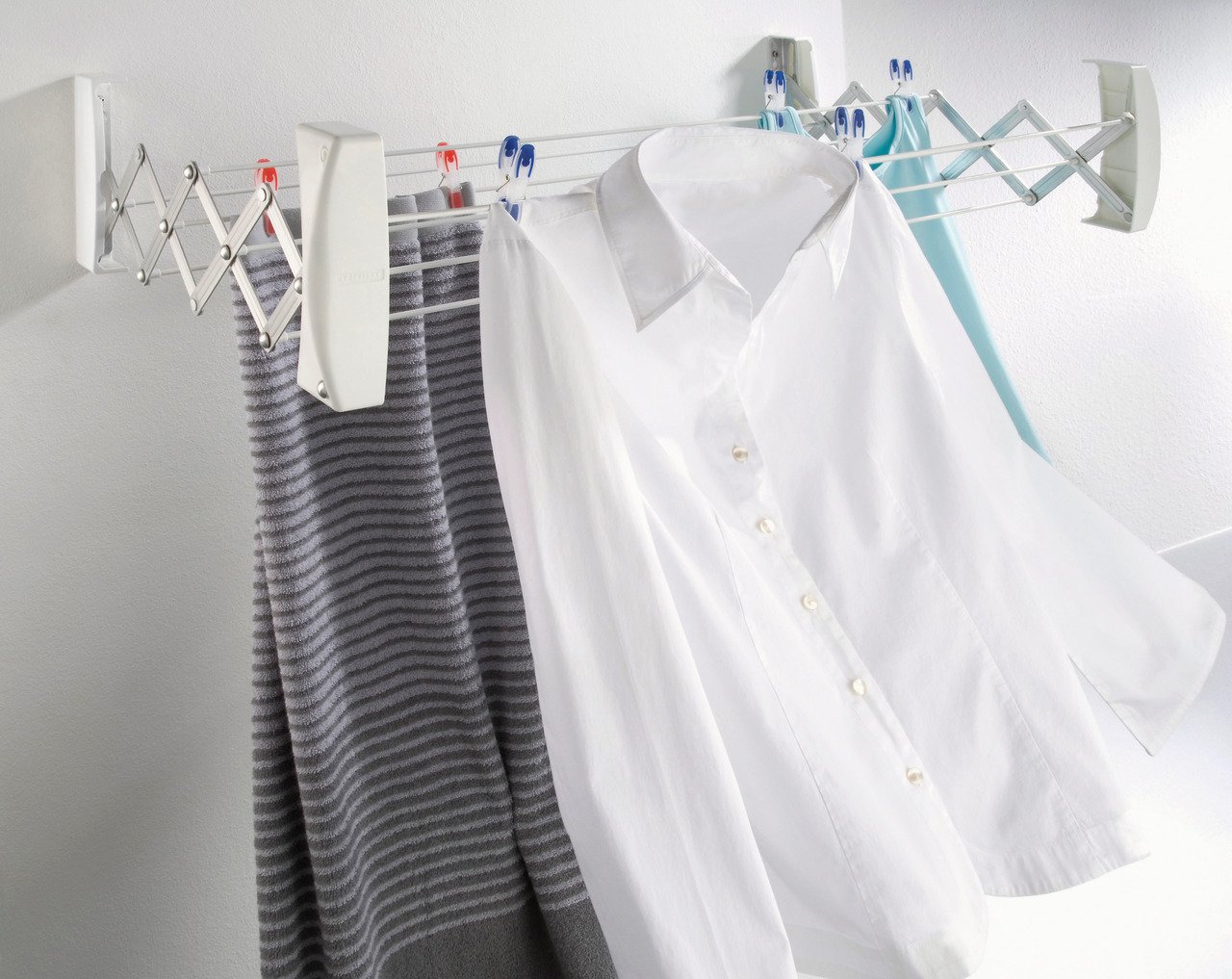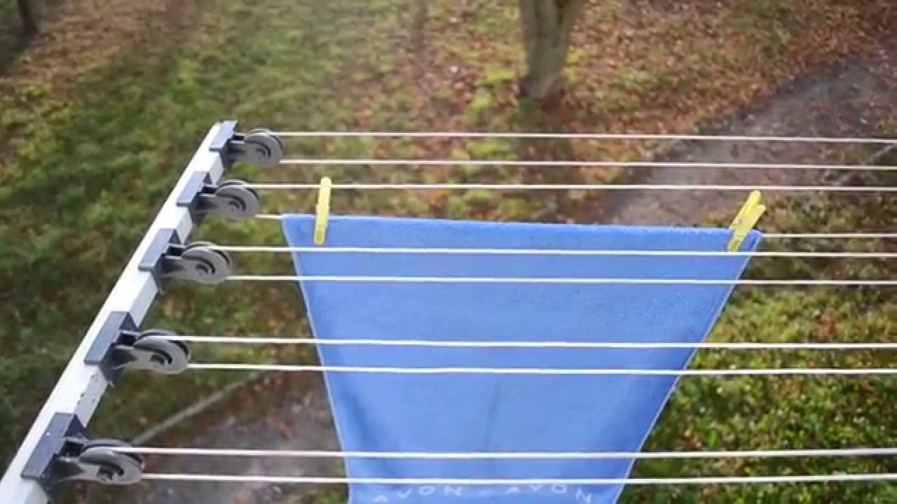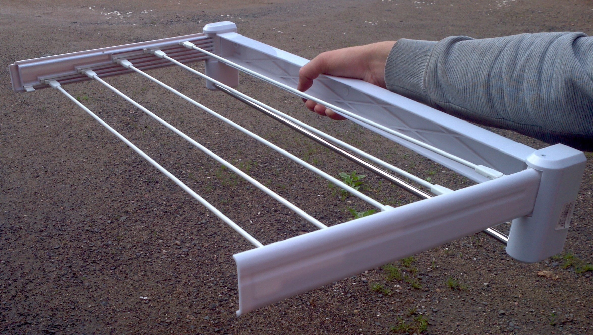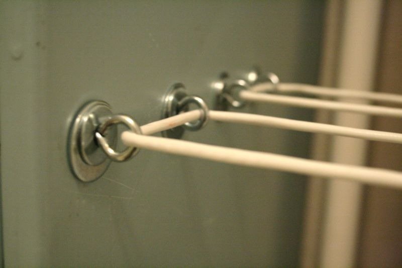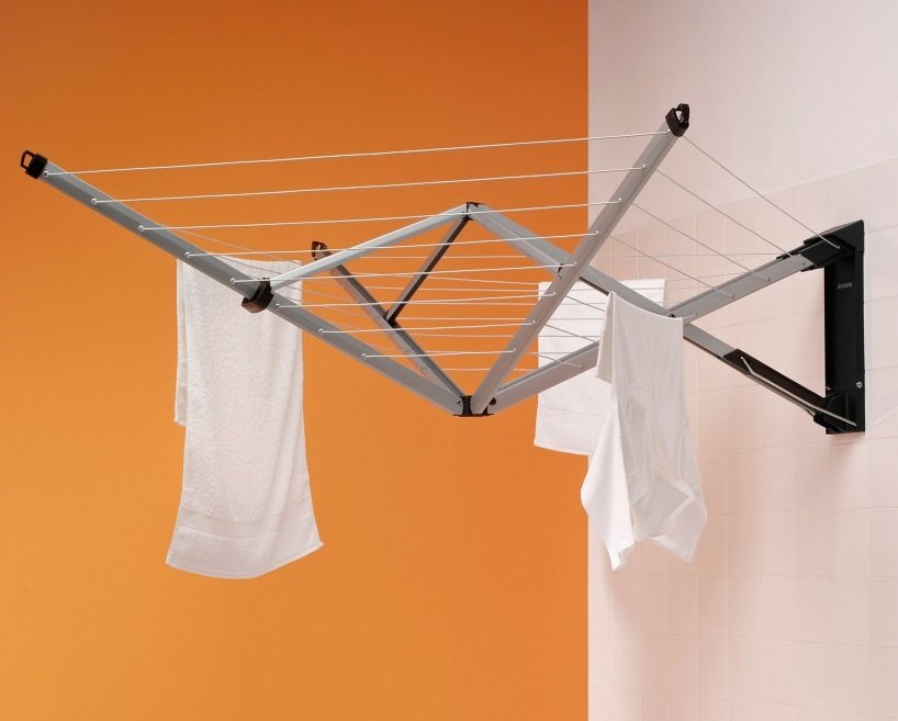 Construcción. Los modelos modernos están equipados con unidades móviles con tendedero. Por lo tanto, para colgar cosas para secarlas, solo necesita mover la cuerda que no está ocupada por las cosas, girándola sobre el bloque. Colgar la ropa en modelos sin elementos móviles no es muy conveniente.