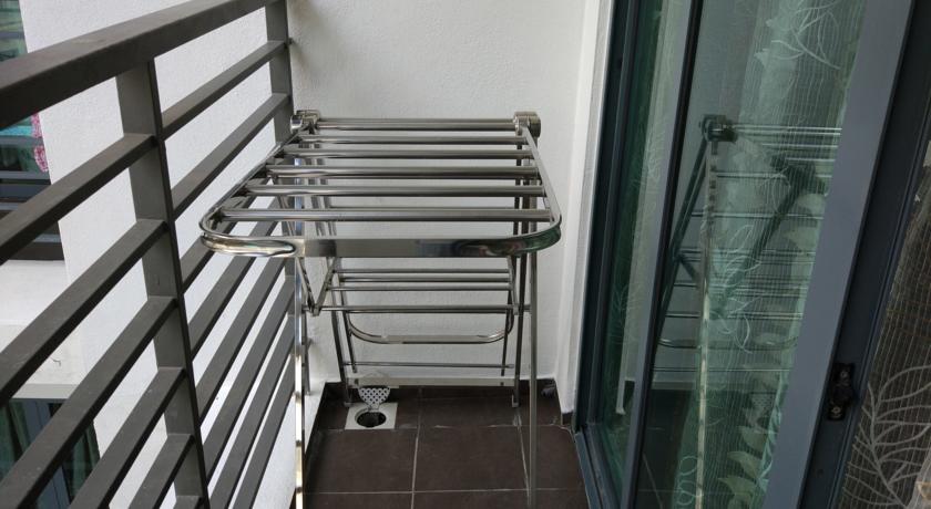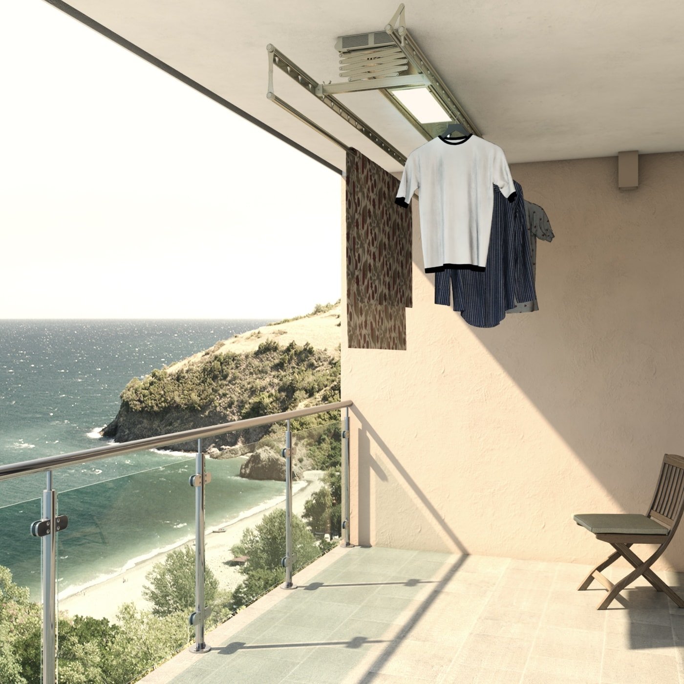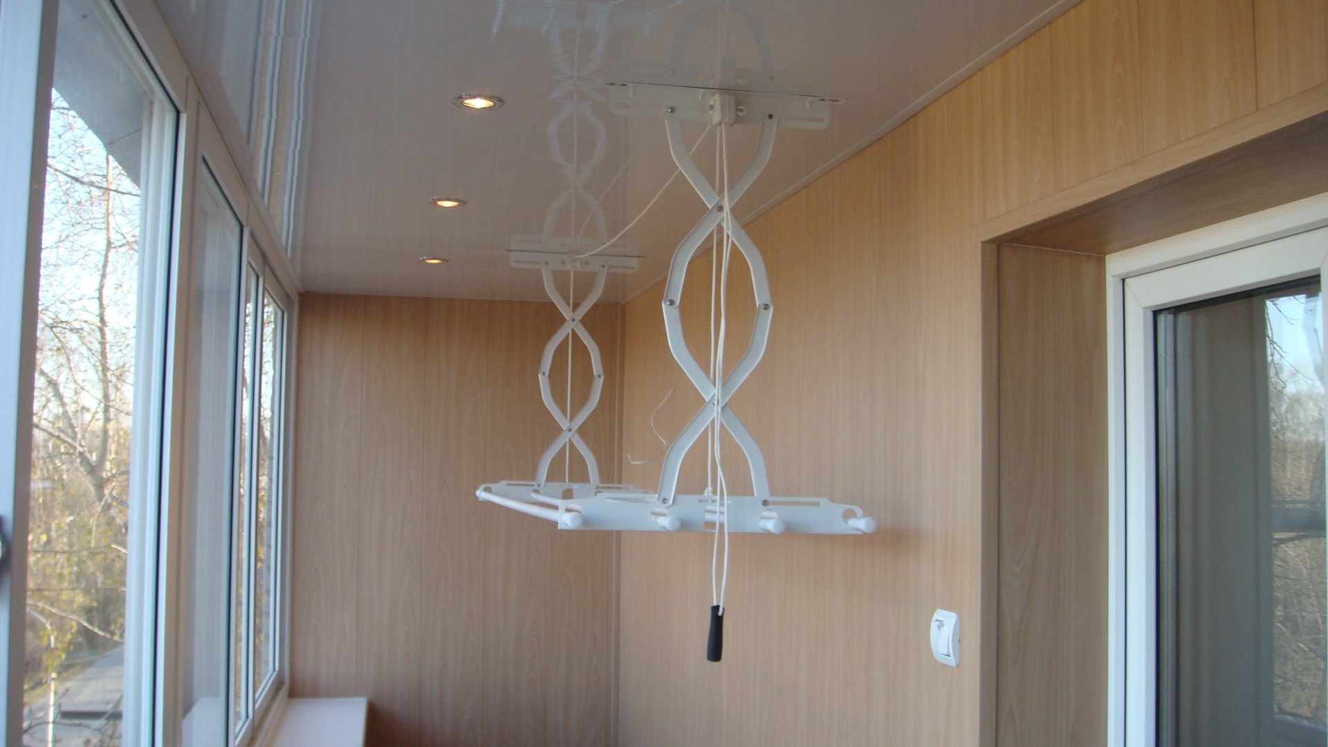 La presencia de un área de recreación en el balcón. El área de relajación del balcón implica la instalación de secadores de extracción de techo de altura ajustable o la instalación de una secadora para exteriores.