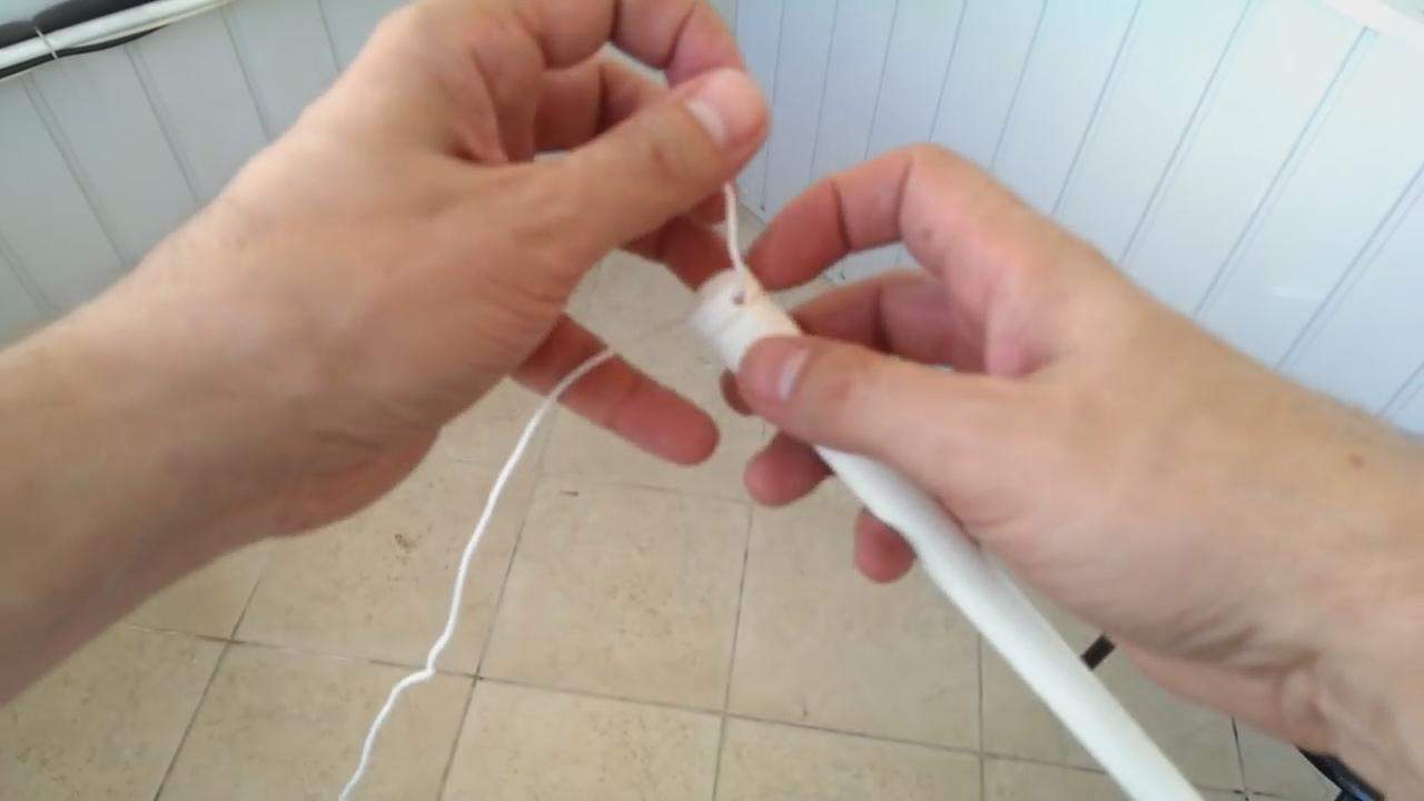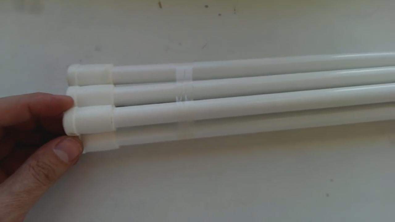 Un soporte plegable en forma de cruz se ensambla a partir de tubos de PVC (deben fijarse entre sí con tornillos que no estén apretados, pero con un ligero margen).