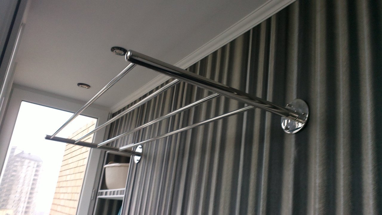 Los secadores de balcón de acero tienen una larga vida útil.Pueden ser tanto modelos suspendidos como de piso. Se aplican para la colocación interna. Las secadoras de acero fijadas en las paredes durarán mucho tiempo. Pueden estar equipados con listones para colgar la ropa o pueden ser esquinas entre las cuales se debe estirar el tendedero. Los modelos de piso se pueden ubicar en cualquier parte del balcón, pero si es necesario, será bastante difícil moverlos. Dichos productos son pesados. Se recomienda colocarlos inicialmente en un rincón alejado de la puerta del balcón y la ventana que se abre. También hay modelos para exteriores hechos de acero inoxidable. Están unidos al balcón desde el exterior, lo que le permite no ocupar su espacio libre. Un tendedero o alambre de acero inoxidable se estira entre los elementos individuales, en los que se ubicarán las cosas. Se recomienda elegir tales modelos para balcones pequeños.