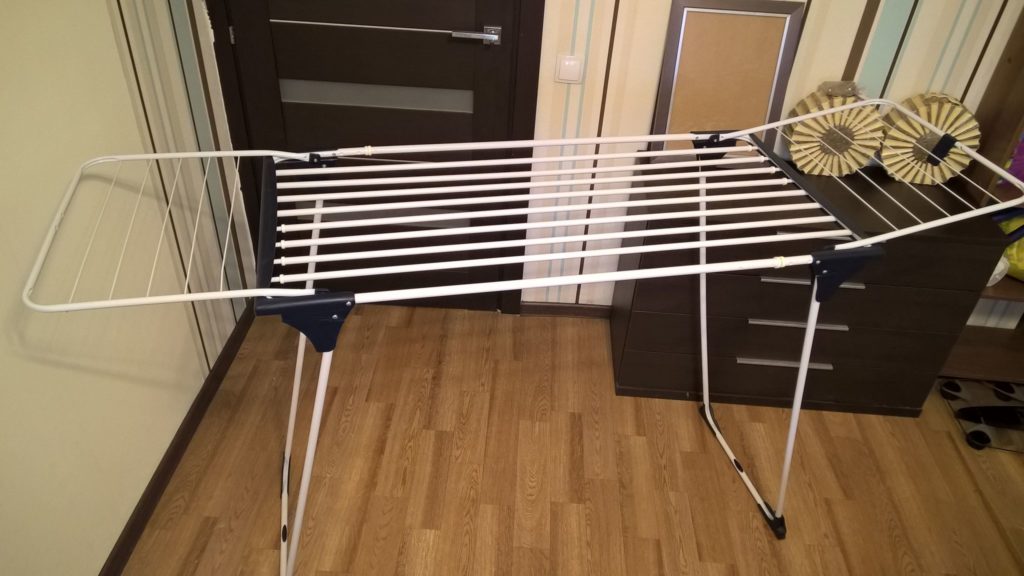 número de varillas y su longitud; Determina la posibilidad de secado simultáneo de una gran cantidad de ropa. Para una familia de 1-2 personas, una secadora con 5 varillas cortas es suficiente. Para una familia numerosa con niños, es adecuada una secadora con 6 y una gran cantidad de varillas de longitud media y larga.