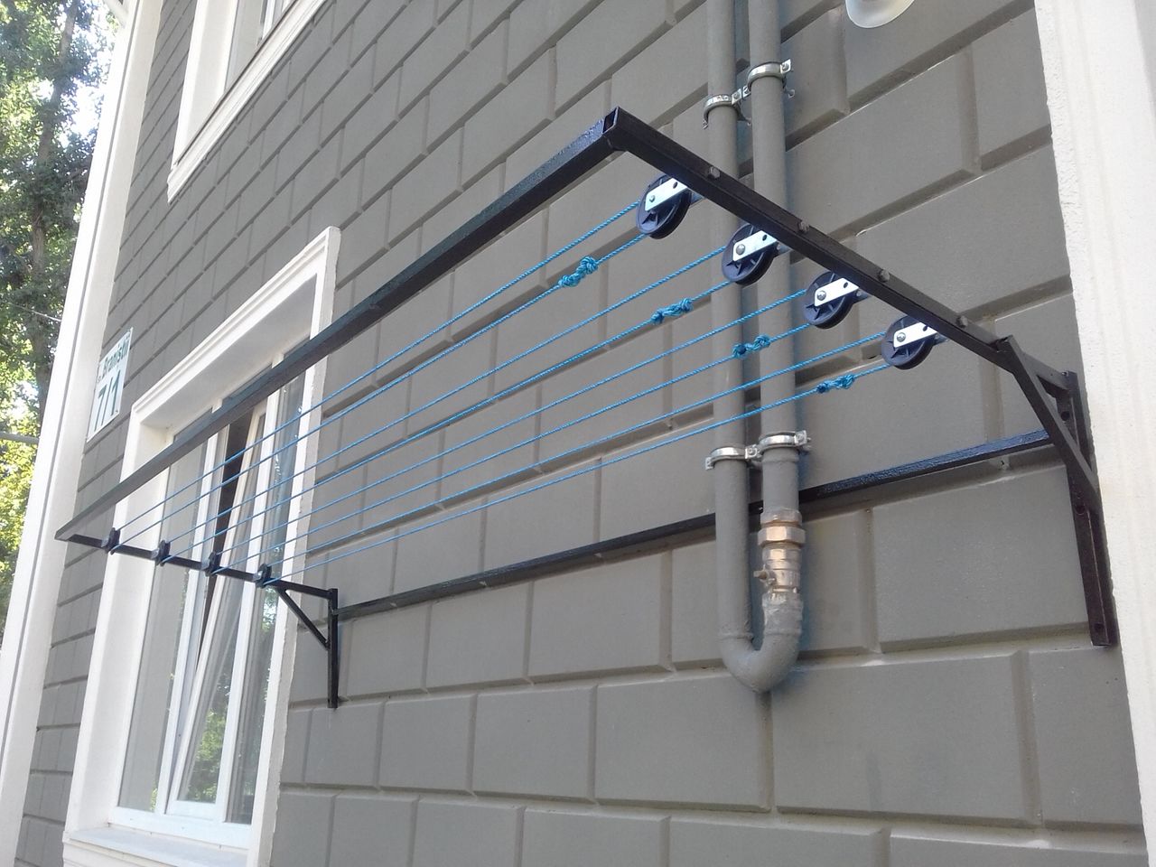 La forma más fácil de hacer una secadora en el balcón es instalar esquinas metálicas con 4-5 agujeros pretaladrados en ellas. Se tirará un tendedero entre estos agujeros. Es mejor arreglar las esquinas de los tacos. Además, con sus propias manos puede hacer fácilmente un sistema de secado completo utilizando tubos y adaptadores de metal y plástico convencionales para ellos. El trabajo se lleva a cabo de acuerdo con las siguientes instrucciones: