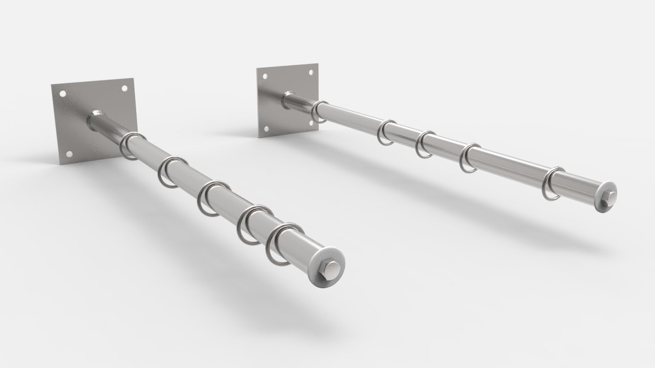 liana (varilla): unida al techo y equipada con varias varillas de descenso en las cuerdas, ocupa un mínimo de espacio, es fácilmente ajustable en altura;