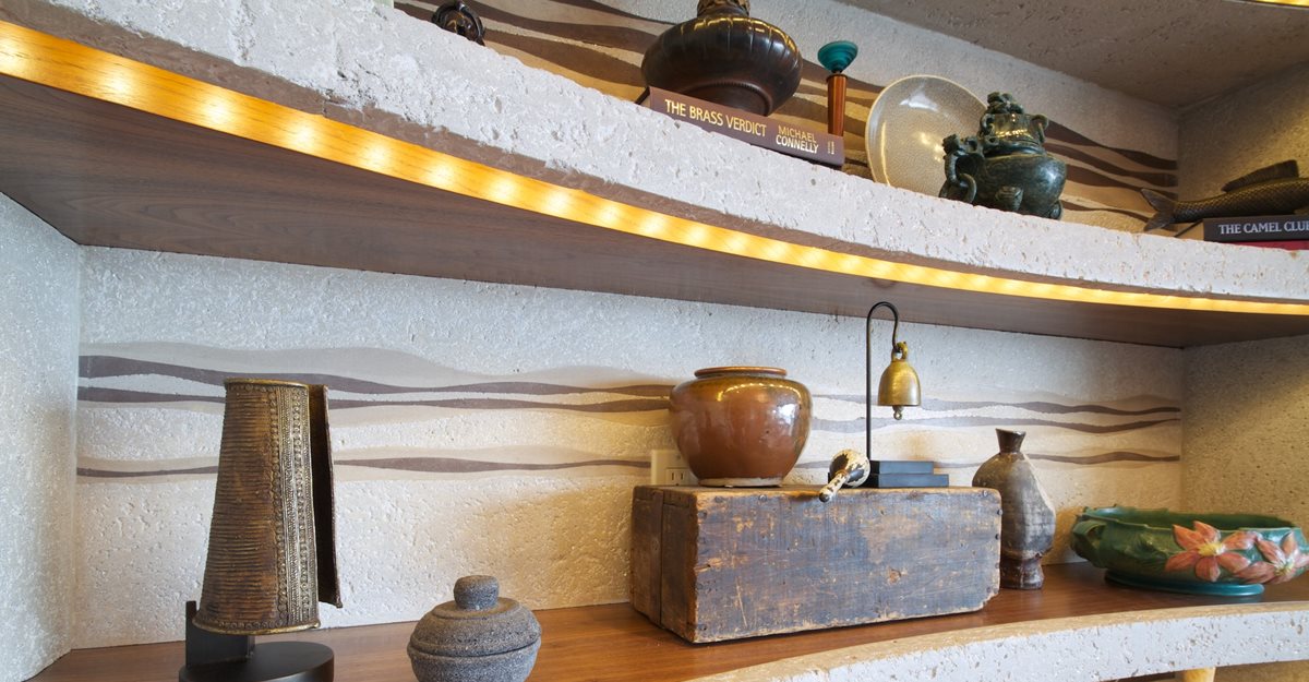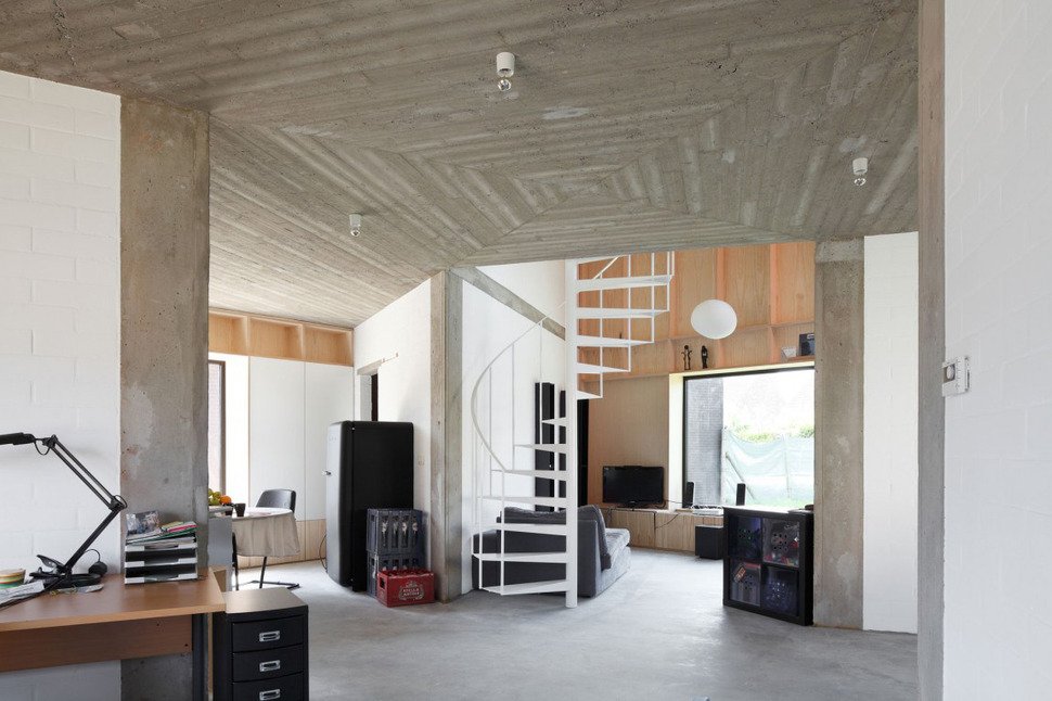 En el interior, los diseñadores a menudo usan estructuras de concreto como columnas, estanterías, nichos. Las columnas se pueden usar para zonificar la habitación o para realizar una función más decorativa. Con la ayuda de columnas, la atención se centra en otros elementos interiores, haciendo hincapié en la claridad de las líneas en la habitación. En el diseño moderno, las columnas rectangulares y cuadradas se usan con mayor frecuencia, las estructuras redondeadas ahora se usan con menos frecuencia. Las estanterías pueden consistir en dos columnas de concreto conectadas por estanterías, mientras que las estanterías pueden estar hechas de paneles, vidrio o madera. Con la ayuda de nichos y bastidores, puede ahorrar espacio y dinero extra en la compra de gabinetes o estantes.