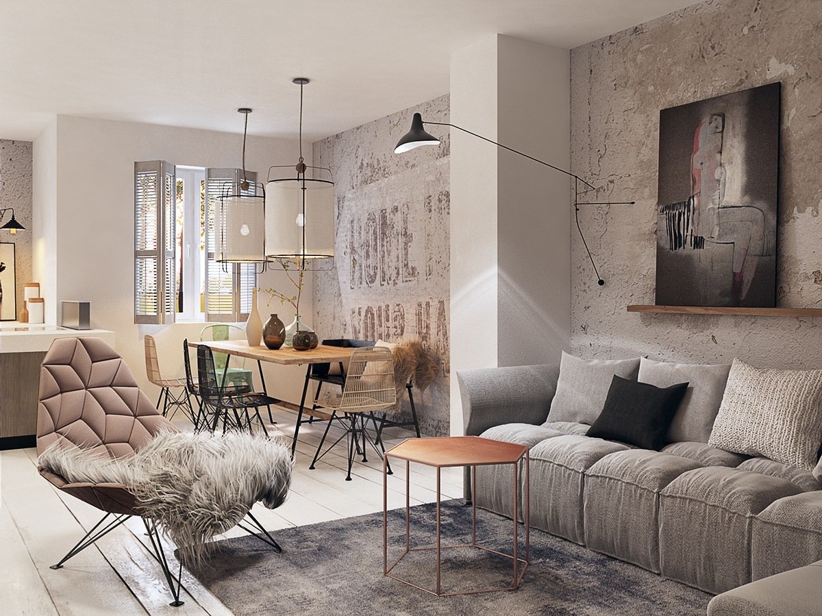 El primer loft de estilo industrial apareció en los años veinte del siglo pasado en los Estados Unidos en Chicago. En aquellos días, la vivienda de alquiler era muy cara. Y las personas de profesiones creativas comenzaron a usar los áticos vacíos de edificios industriales y residenciales para sus talleres y estudios. Desde entonces, el estilo industrial ha sido popular en todo el mundo.