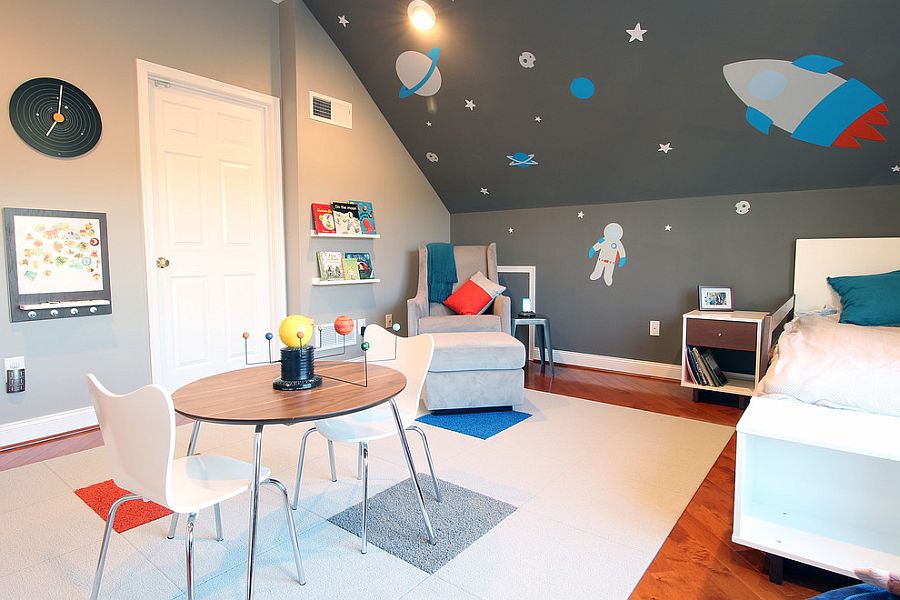 Aquí procedemos de los pasatiempos y preferencias de los niños. Además, es necesario tener en cuenta los posibles cambios por adelantado. Los niños crecen, los gustos cambian, por lo que debe volver a pintar y volver a equipar la habitación para un gusto adolescente. Considere las posibles variaciones.
