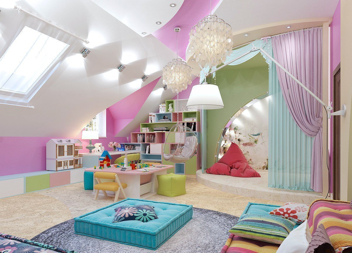 Habitación infantil en el ático +50 fotos interiores y ejemplos de diseño