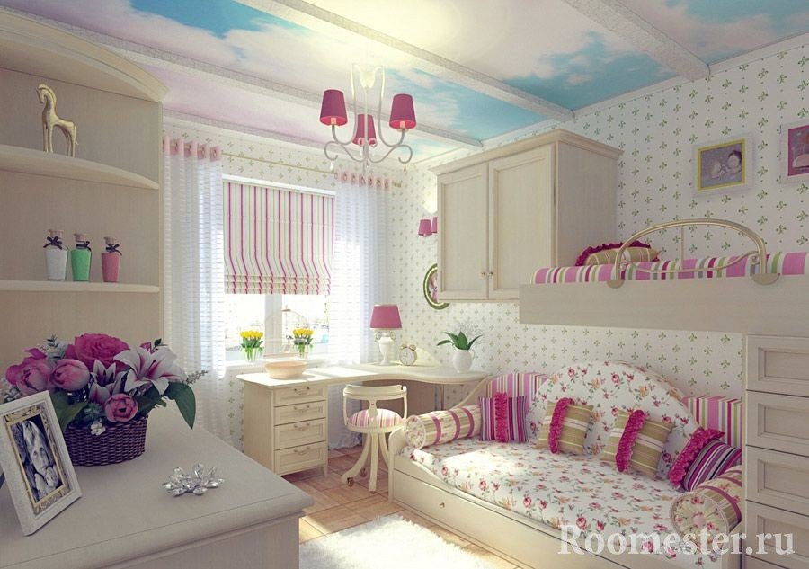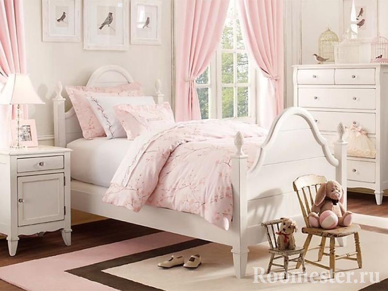 Permita que el niño tome sus propias decisiones cuando arregle los muebles. El interior está creado específicamente para las preferencias de la niña. Deje que el niño elija independientemente la ubicación de la cama, parte de la habitación para juegos y trabajo.