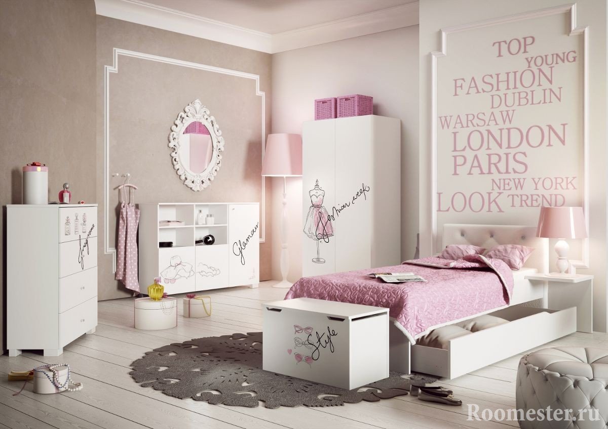 Este período de edad es el más difícil. Ahora las niñas son muy exigentes y caprichosas, al crear un diseño para niños, los padres tendrán que considerar todos los deseos de sus hijos. Una adolescente participará activamente en la discusión del interior por parte de su coro, y su opinión deberá tenerse en cuenta. El glamoroso color rosa usado anteriormente ya no es adecuado para el diseño de habitaciones.