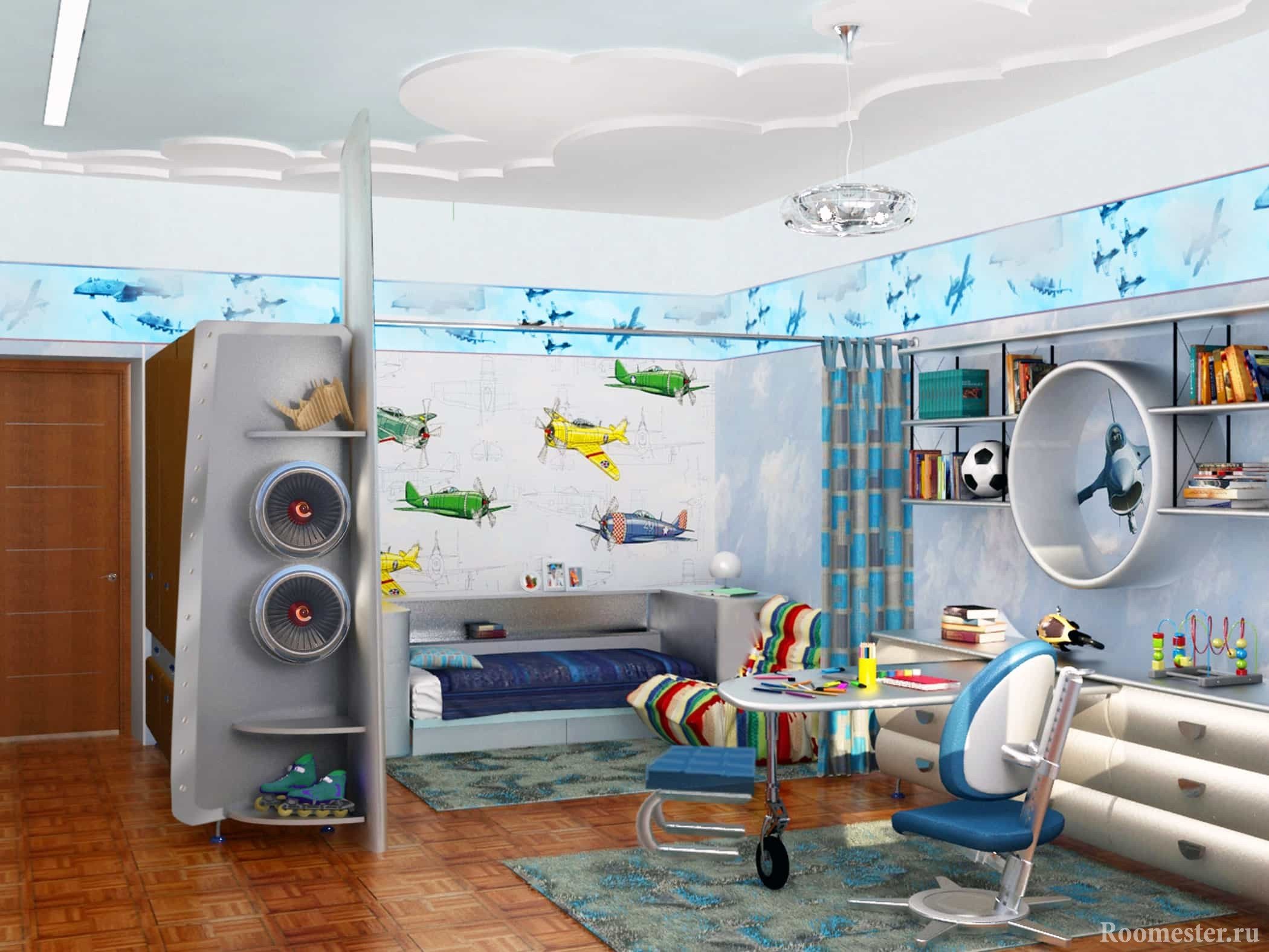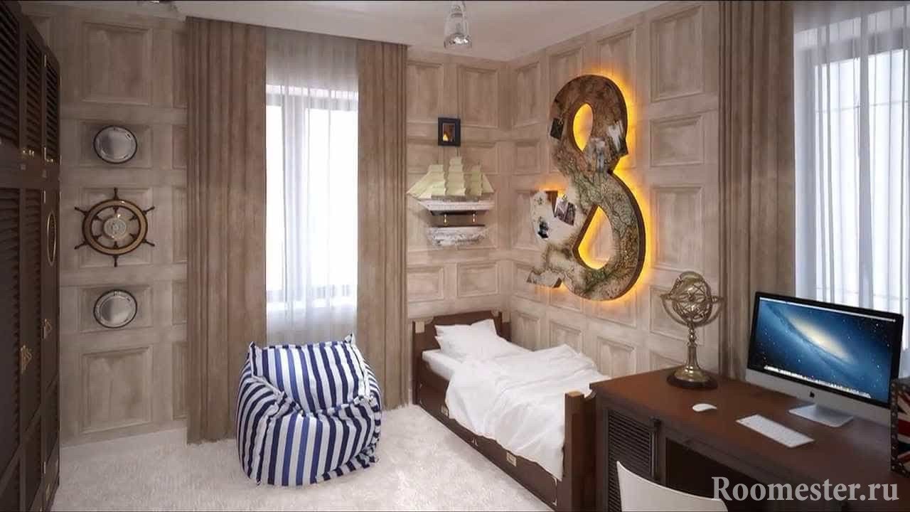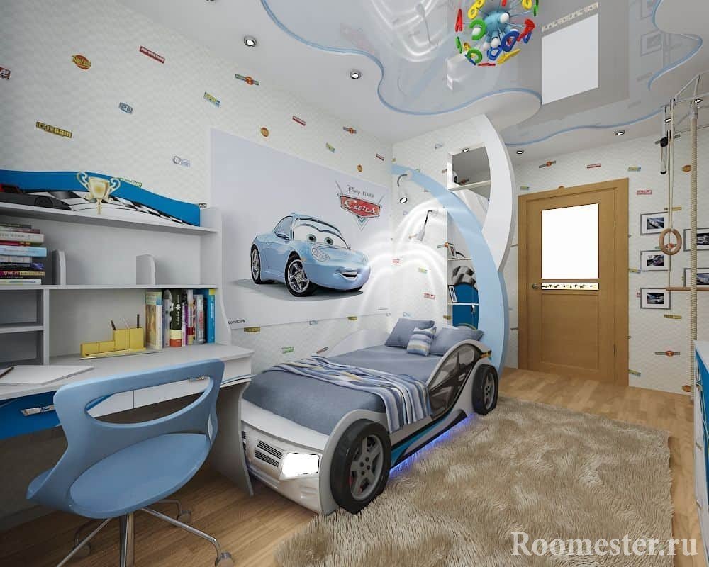 En un esfuerzo por crear el espacio perfecto para el futuro hombre, debe inculcarle un amor por la dinámica y la alta tecnología. Es mejor abandonar los interiores clásicos, las tendencias modernas concisas, moderadas atraerán a un niño de cualquier edad.