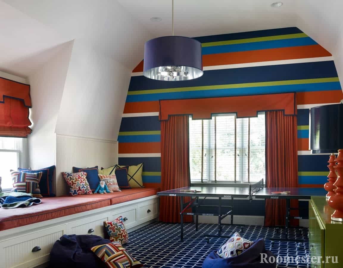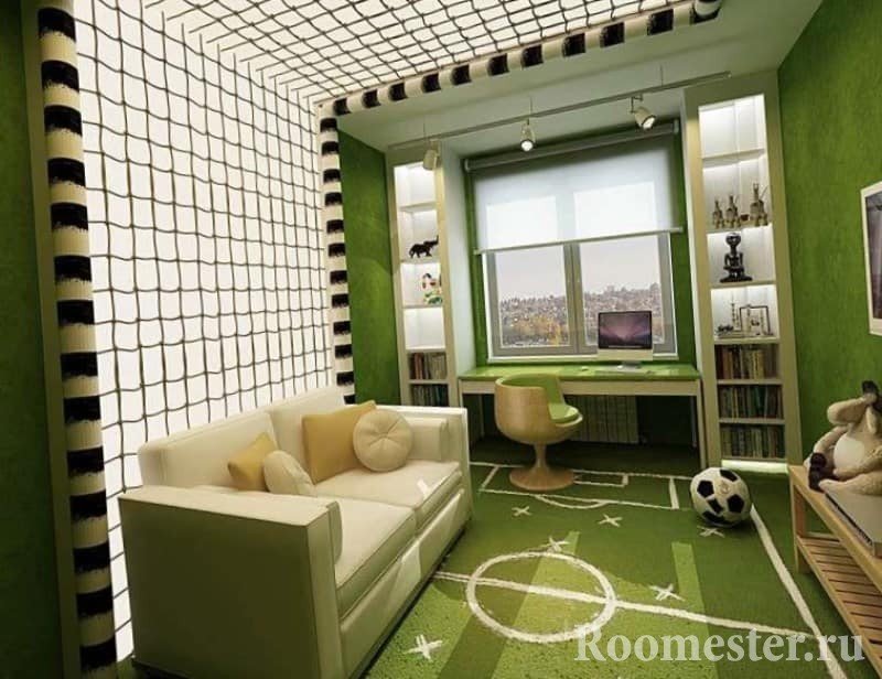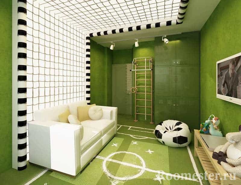 Deporte A muchos niños les apasiona ver varias competiciones, practicar deportes por su cuenta. El interior de la habitación de los niños, asociado con el entrenamiento, el simbolismo, los atletas famosos, es reconocido por estimular la voluntad de ganar, el espíritu de equipo. La combinación de colores del grupo temático: colores brillantes y de carácter fuerte que repiten símbolos deportivos famosos.