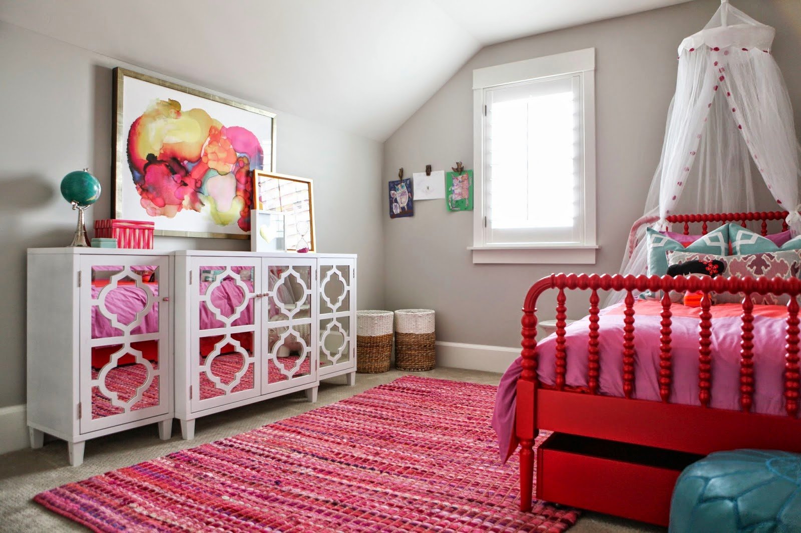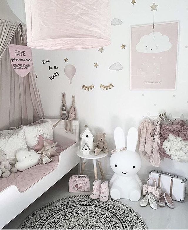 Los niños crecen rápidamente. Y si no planea cambiar el acabado cuando su "princesa" odia el rosa, ingrese este color de manera medida. Haga que las paredes y los muebles sean neutros. Use colores brillantes en la decoración y textiles. Para cambiar la combinación de colores, bastará con actualizar los accesorios.
