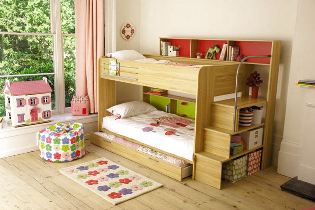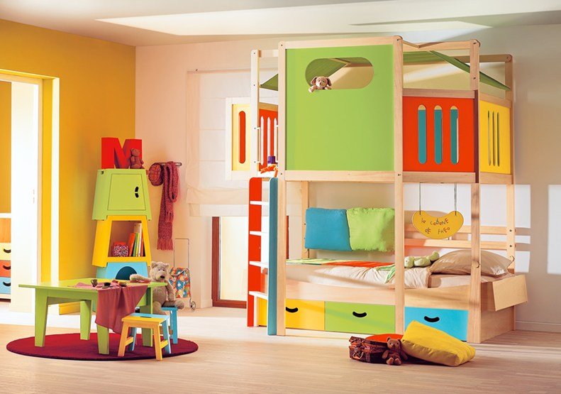 Es muy importante elegir el mobiliario adecuado para la habitación de los niños. Ciertamente debe ser duradero, ya que los niños son inquietos y enérgicos. No debe tener esquinas afiladas y elementos metálicos peligrosos. Elija muebles de materiales naturales con un revestimiento seguro. Intente ahorrar la mayor cantidad de espacio libre posible para los juegos de su hijo. Esto ayudará a las camas con cajones, modelos de literas combinadas, en las que la mesa se combina con una litera y un armario. Elija tonos de luz, ya que los colores brillantes son emocionantes y rápidamente molestos.