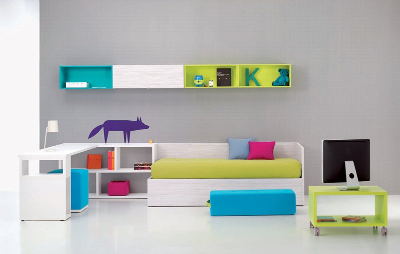 En la habitación del estudiante vale la pena instalar muebles combinados.El lugar combinado de trabajo y dormitorio es una excelente solución al problema de la escasez de espacio. En las paredes se deben colocar libros de texto para estudiar: un mapa geográfico, un alfabeto.