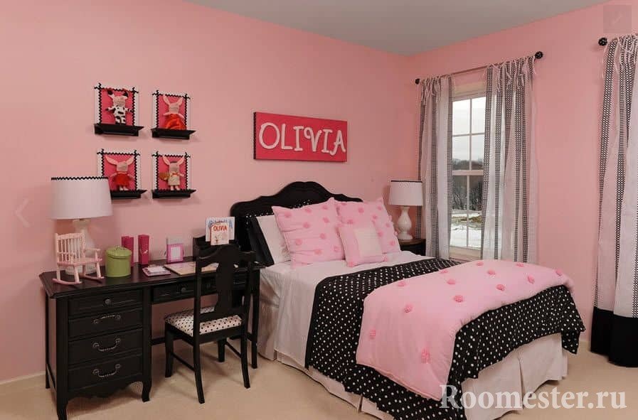 El diseño de la habitación de una niña implica una decoración colorida o moderada de la pared, según la edad. Si el adolescente tiene 15 años, las paredes se pueden pintar con una mezcla especial de marcadores, que posteriormente le permite crear dibujos creativos en ella. Si la pintura es magnética, entonces en el avión será posible colocar imágenes o carteles de ídolos. Esto protegerá las paredes de la contaminación con cinta adhesiva o sustancias adhesivas.No debe esperarse que el fondo de pantalla permanezca en su forma original, ya que este período se caracteriza por un rápido cambio de intereses y la necesidad de autoridades. Sus imágenes siempre se colocan en o ligeramente por encima de sus cabezas en las paredes.