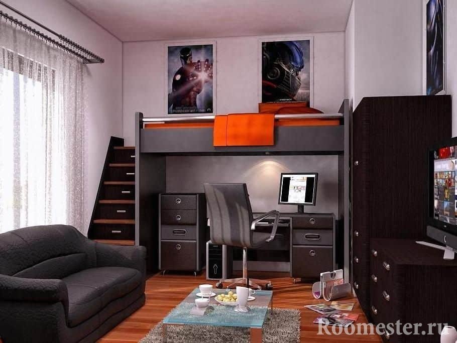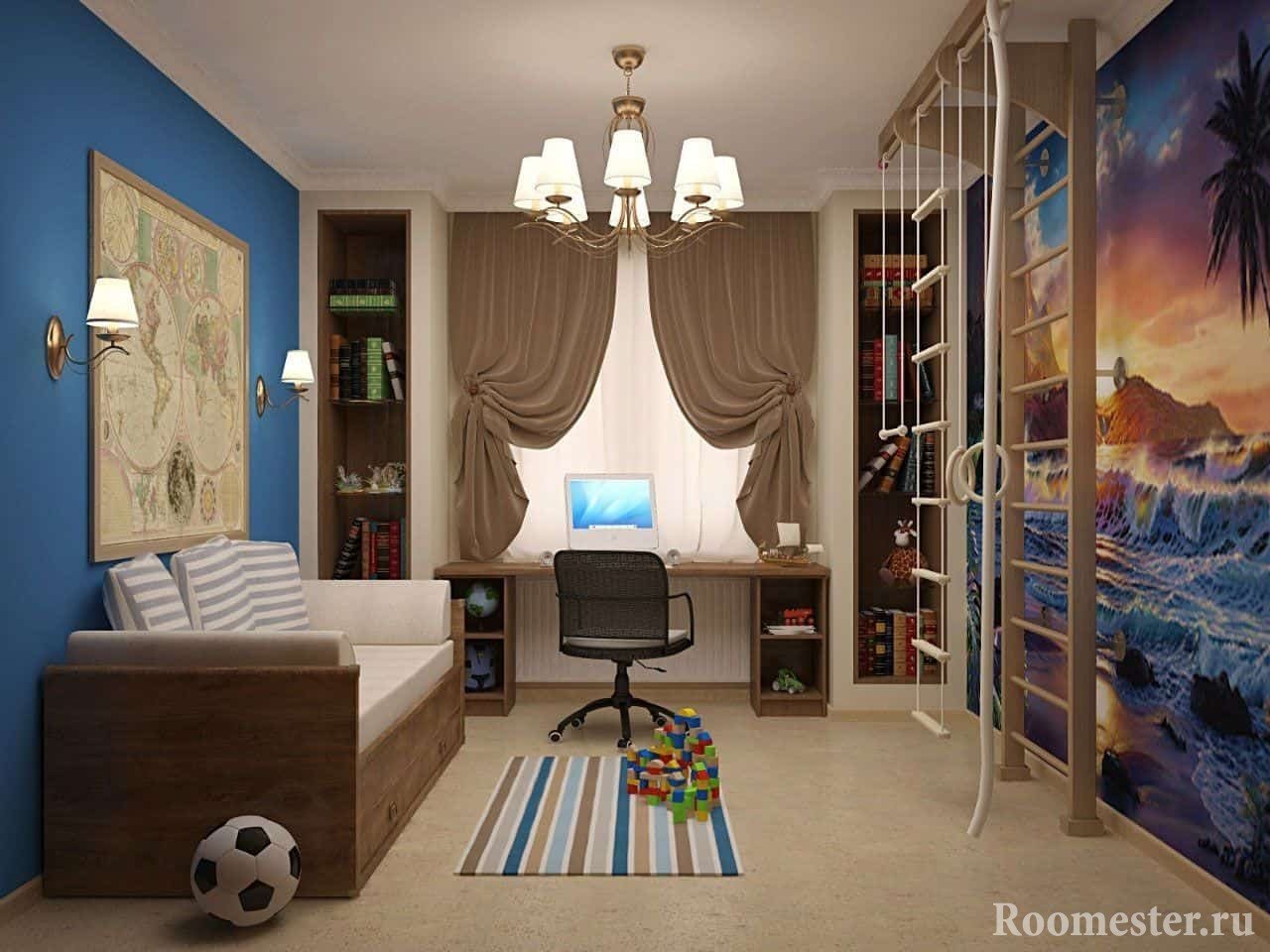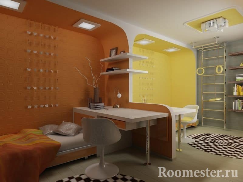 La última opción es la más universal. Independientemente del tema elegido, se debe proporcionar un rincón deportivo en la habitación del adolescente. Es importante determinar qué le interesa a su hijo. Esto suele estar a la vista, los chicos rara vez esconden sus pasatiempos.