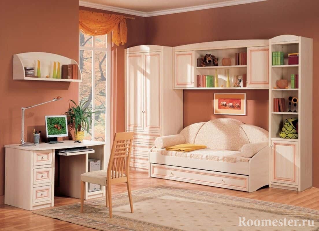 Hay muchos requisitos para muebles para niños. En primer lugar, no debería ser mucho, un conjunto mínimo. Ella no debe tirar basura en el espacio y limitar el movimiento de un adolescente. En segundo lugar, la máxima funcionalidad de todos los productos. Si el estilo no implica madera oscura, entonces es mejor detenerse en los tonos claros de la madera natural. Cualquier accesorio