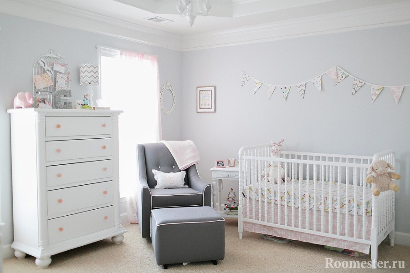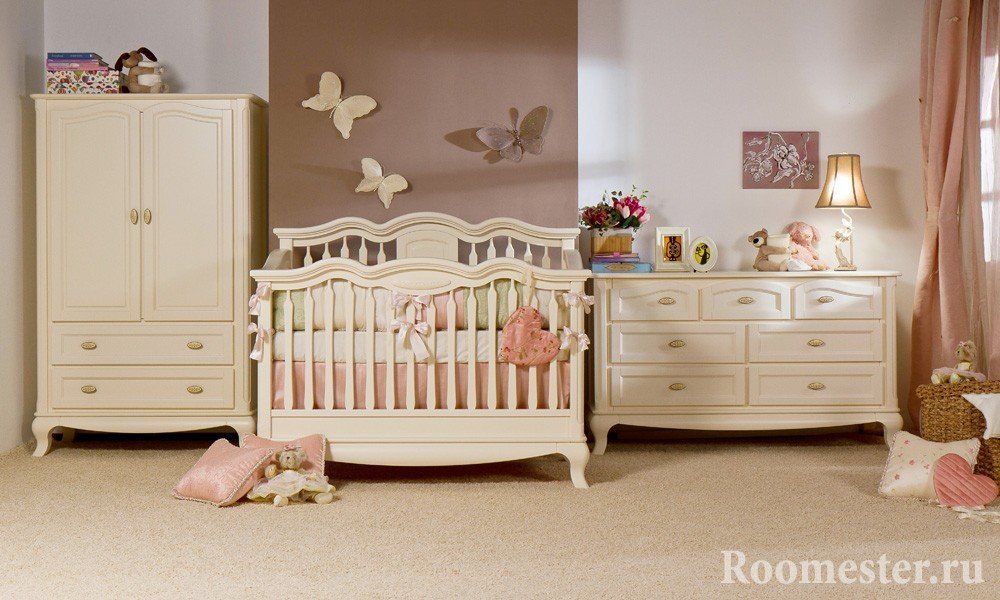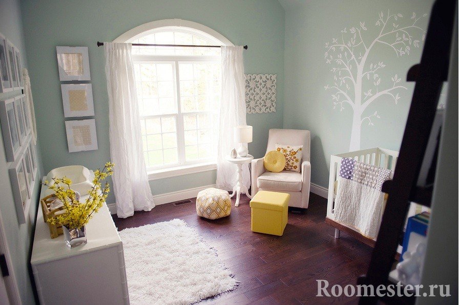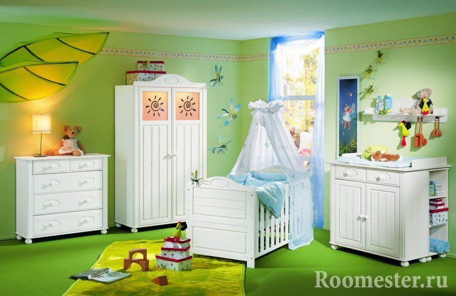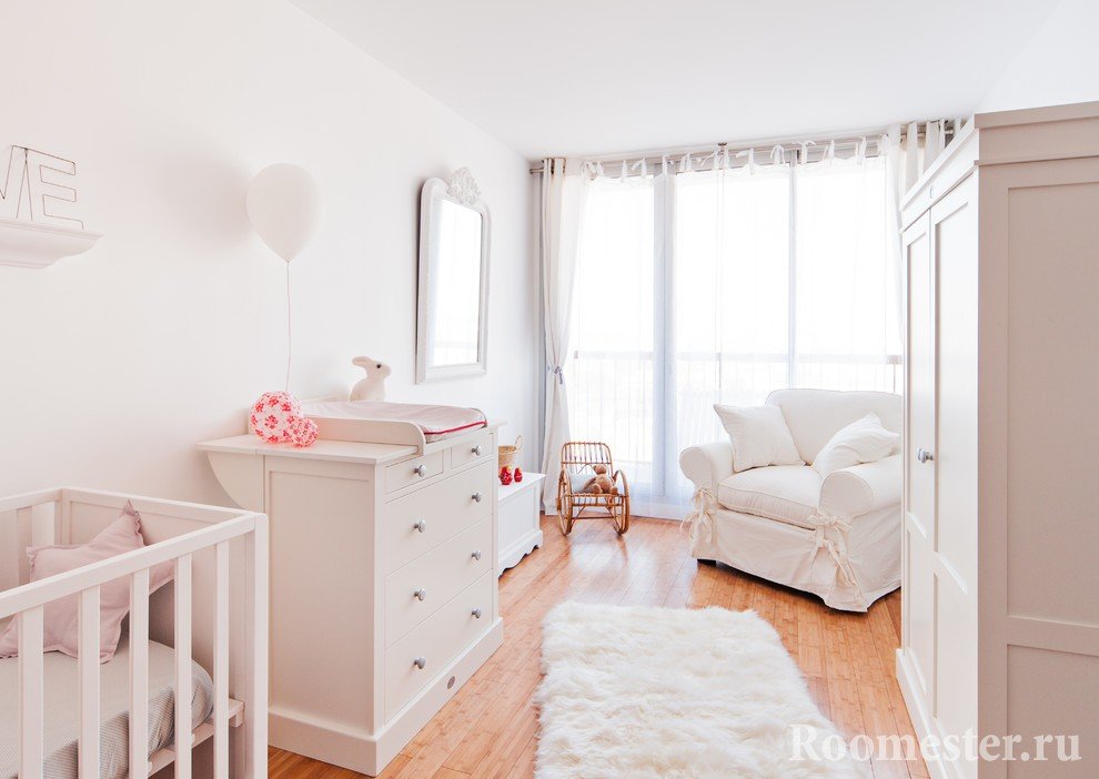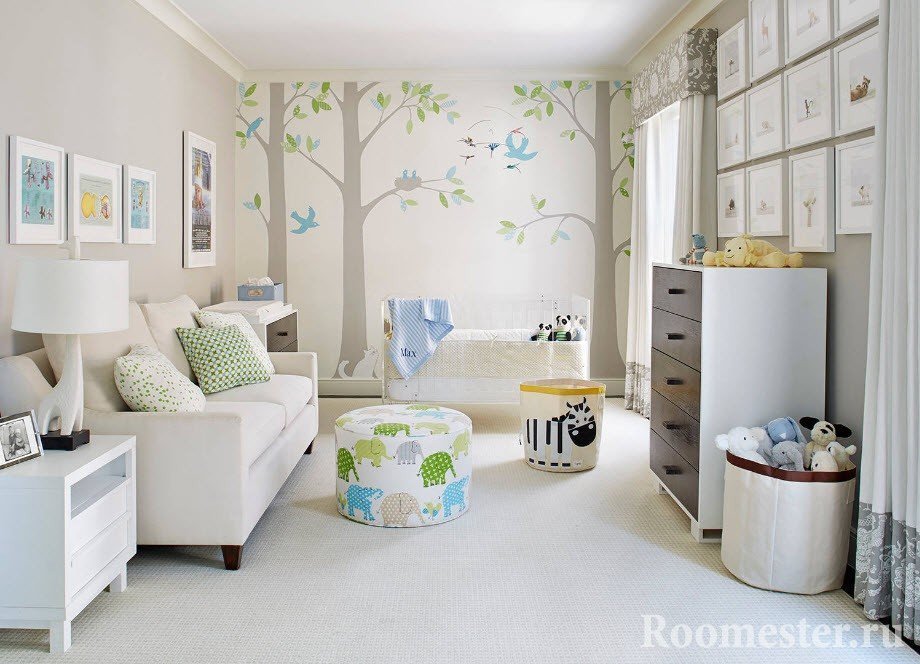 Al organizar una guardería en primer lugar: seguridad, respeto al medio ambiente, practicidad. Los muebles obligatorios son una cama, una mesa para cambiar pañales, una silla de alimentación, una pequeña cómoda para guardar pañales. El bebé y la madre que pasan mucho tiempo con el niño deben sentirse cómodos y cómodos aquí.