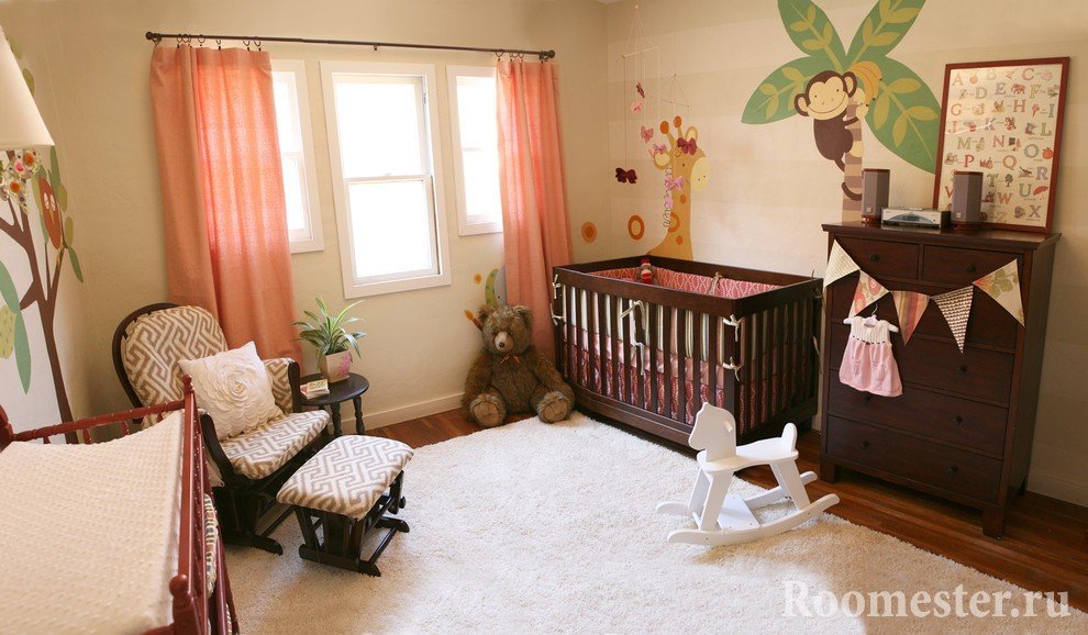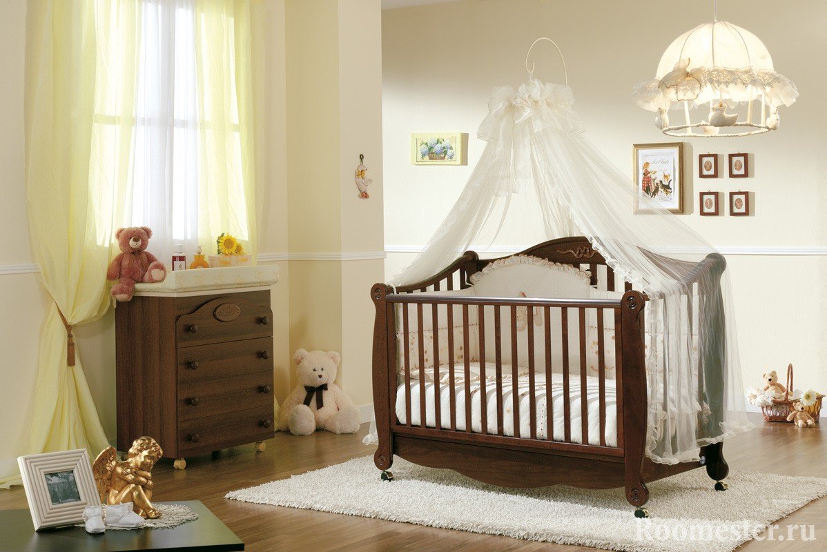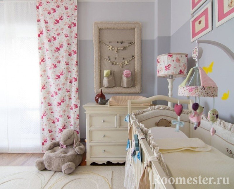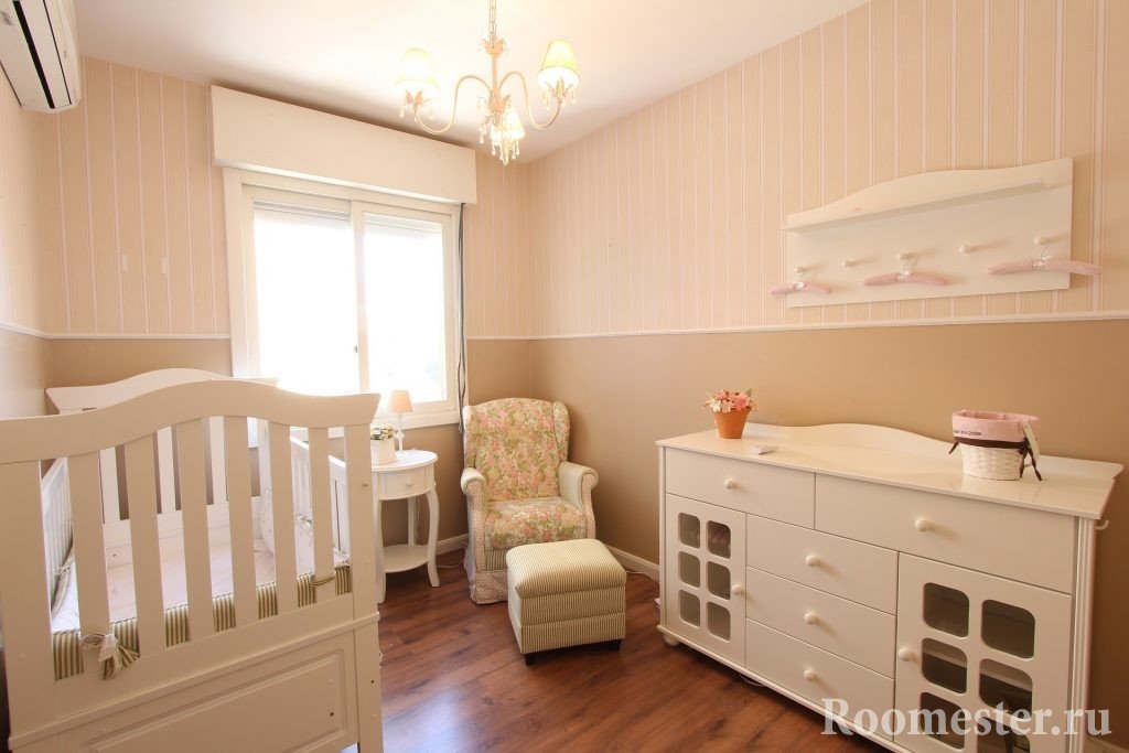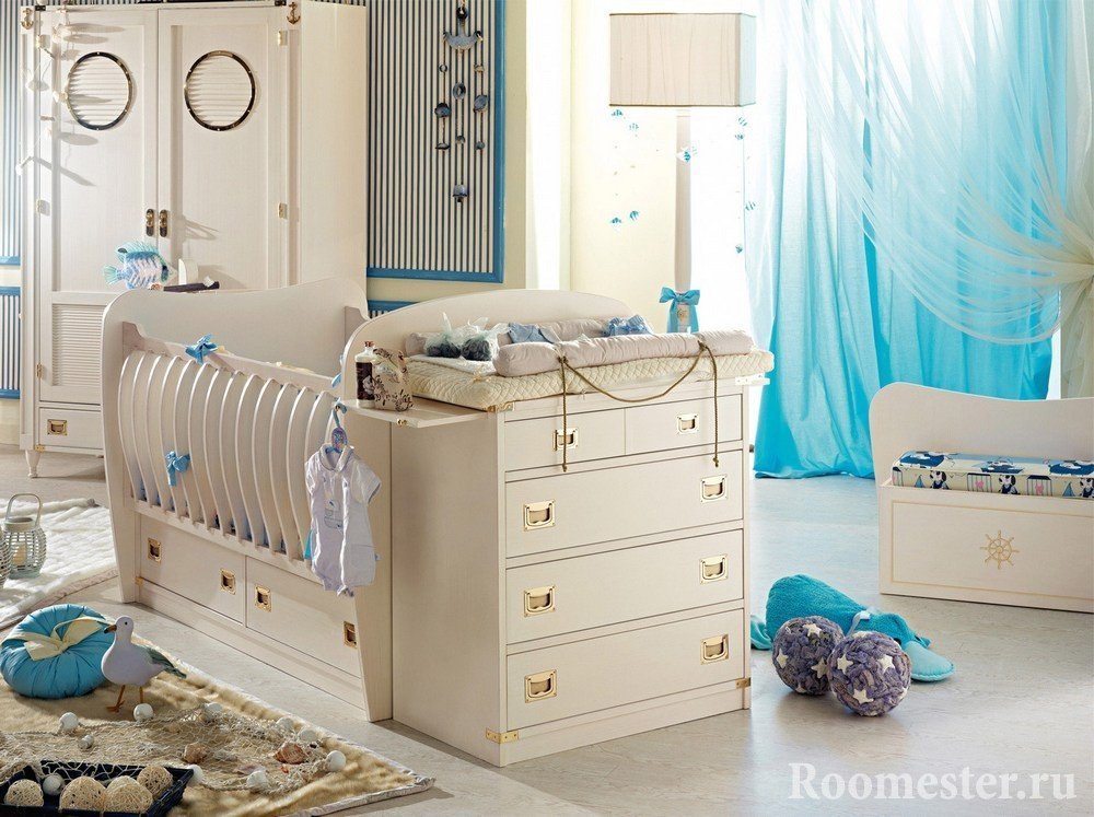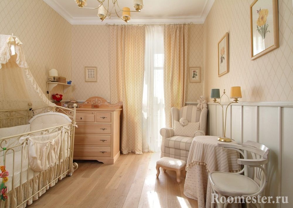 Al organizar una guardería en primer lugar: seguridad, respeto al medio ambiente, practicidad. Los muebles obligatorios son una cama, una mesa para cambiar pañales, una silla de alimentación, una pequeña cómoda para guardar pañales. El bebé y la madre que pasan mucho tiempo con el niño deben sentirse cómodos y cómodos aquí.