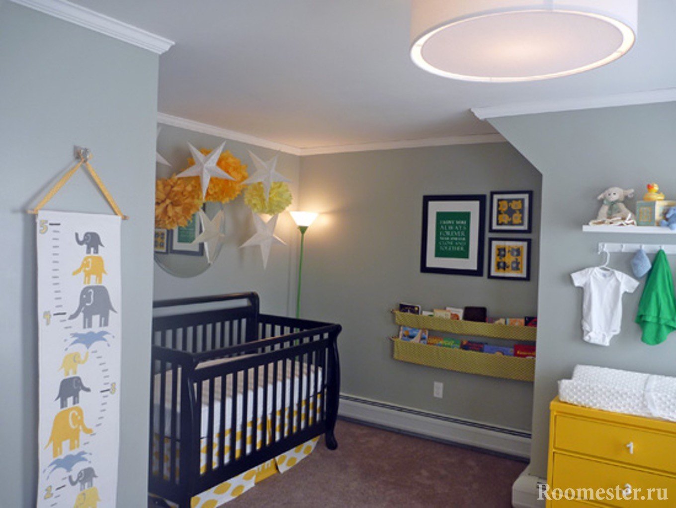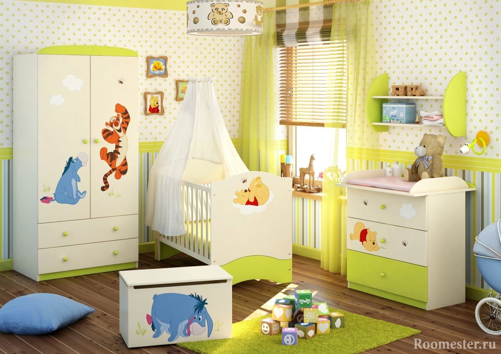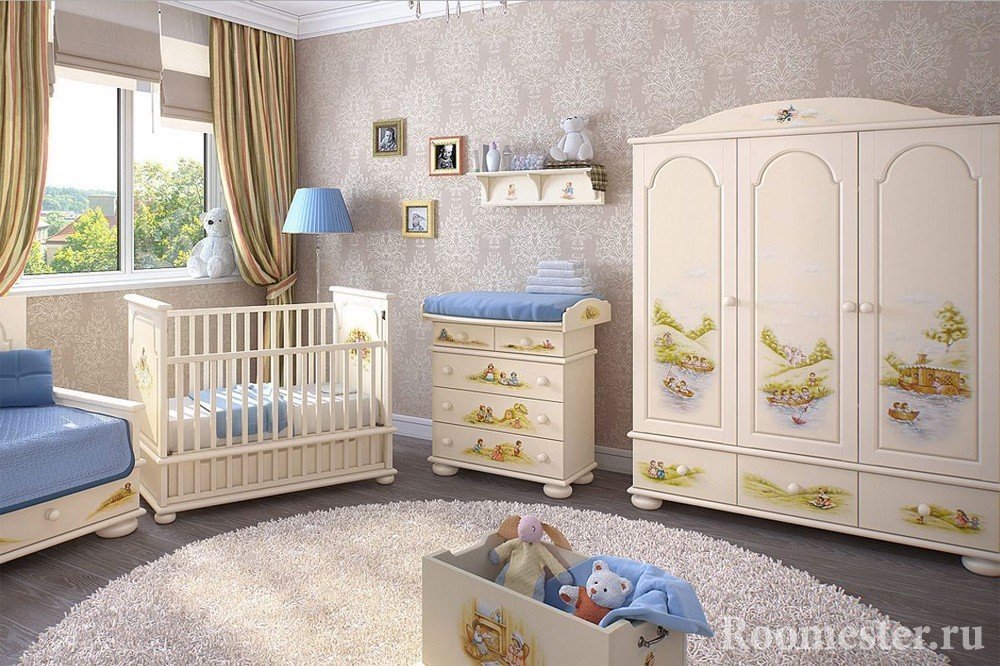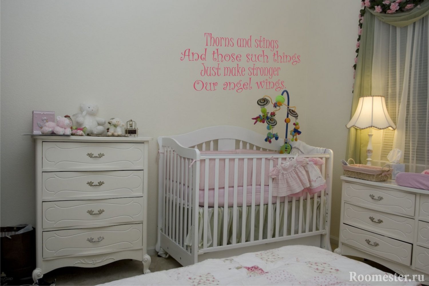 Al organizar una guardería en primer lugar: seguridad, respeto al medio ambiente, practicidad. Los muebles obligatorios son una cama, una mesa para cambiar pañales, una silla de alimentación, una pequeña cómoda para guardar pañales. El bebé y la madre que pasan mucho tiempo con el niño deben sentirse cómodos y cómodos aquí.