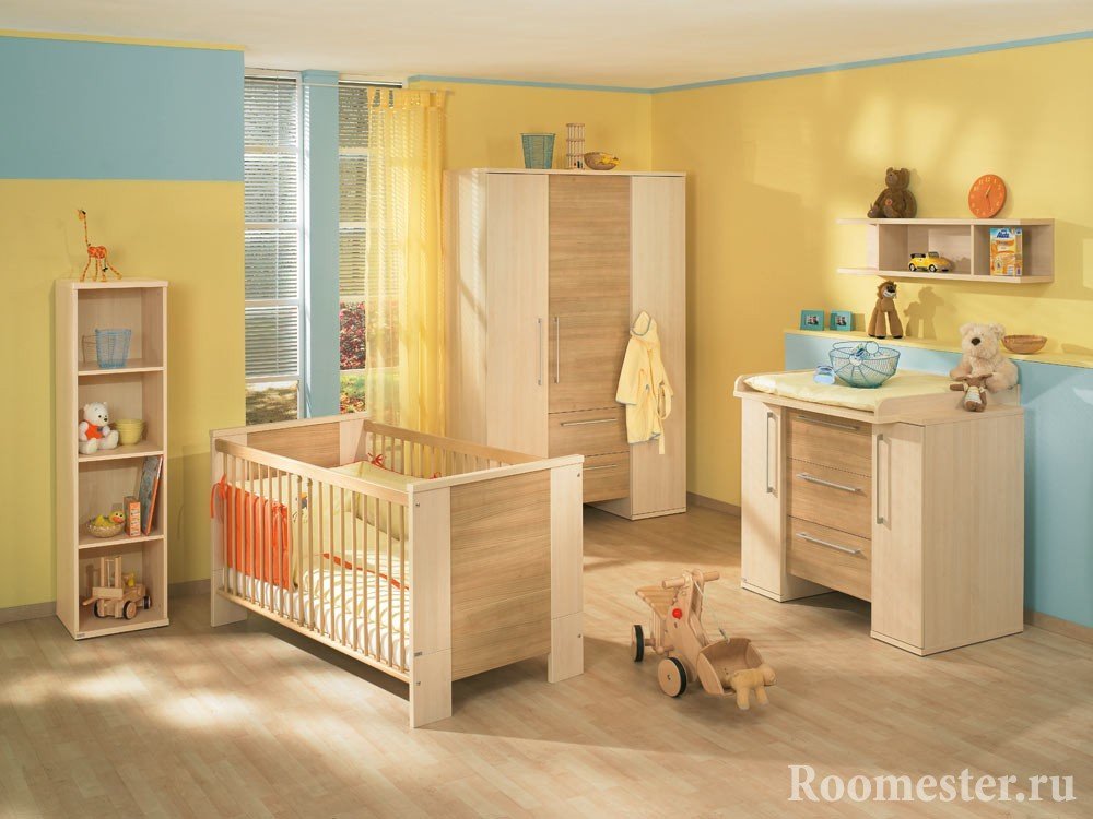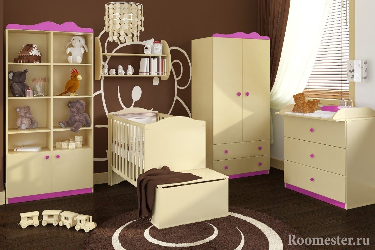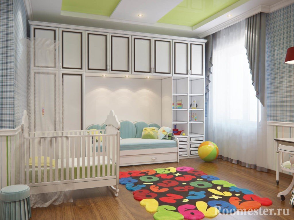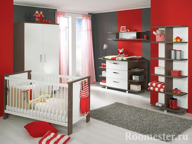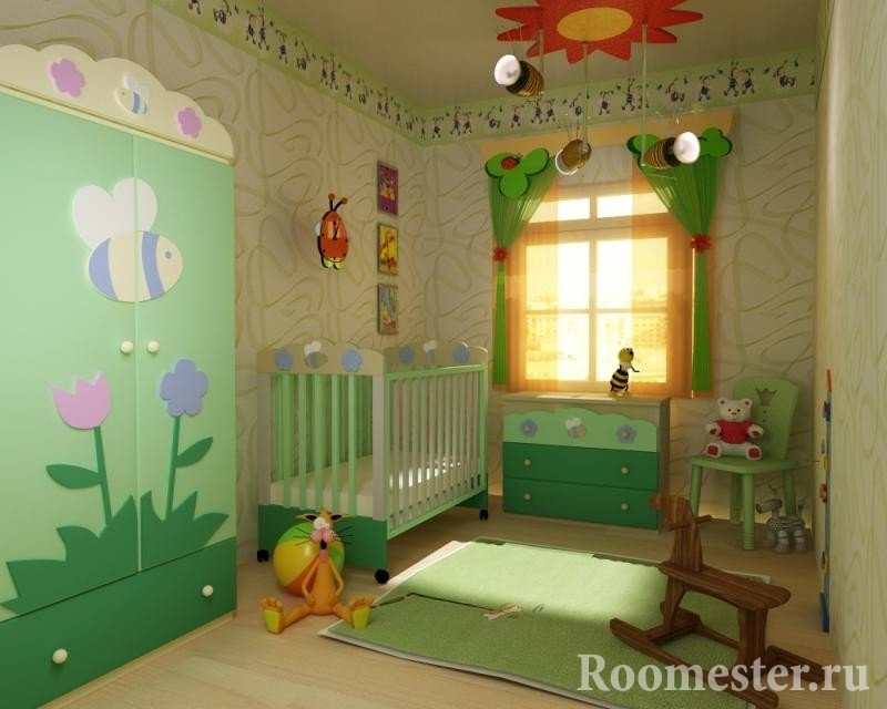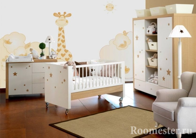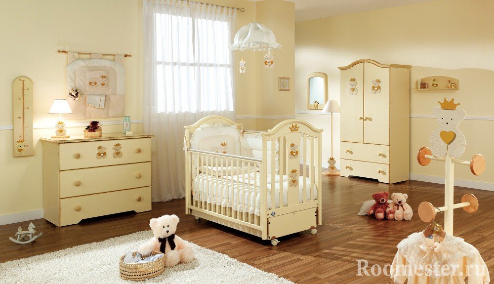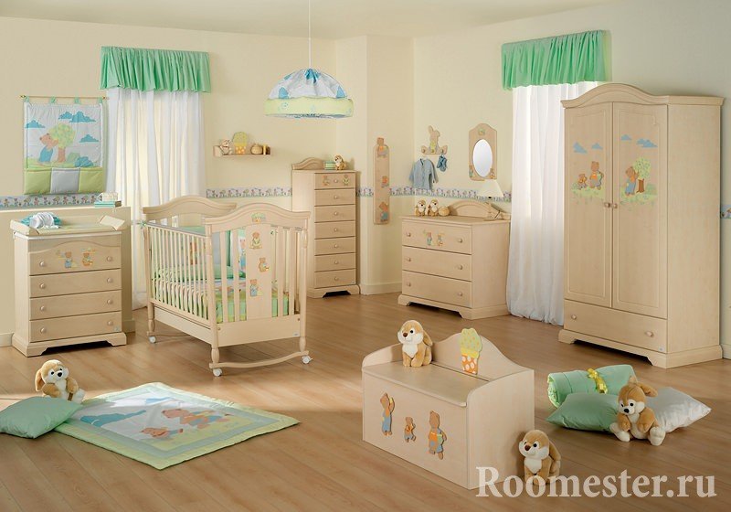 La habitación de los niños no debe estar abarrotada de numerosos muebles. Debe instalarse de tal manera que no interfiera con los padres del recién nacido para moverse libremente por la habitación. Si se cumple esta condición, los muebles no evitarán que el niño adulto se arrastre o camine. Una pequeña cantidad de muebles en la guardería le permite crear una habitación espaciosa y reducir la cantidad de polvo en la habitación.
