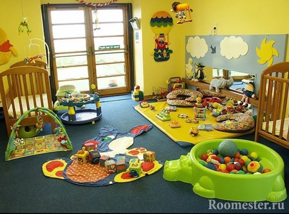 La mejor opción para la ubicación de la zona para juegos activos del bebé está en la parte central de la habitación. En un apartamento pequeño, la zona de juego se puede ubicar cerca de la ventana, donde en el futuro habrá una mesa de estudio y estudios creativos. Cerca del lugar donde jugará el bebé, es necesario colocar bastidores, contenedores o canastas para juguetes.