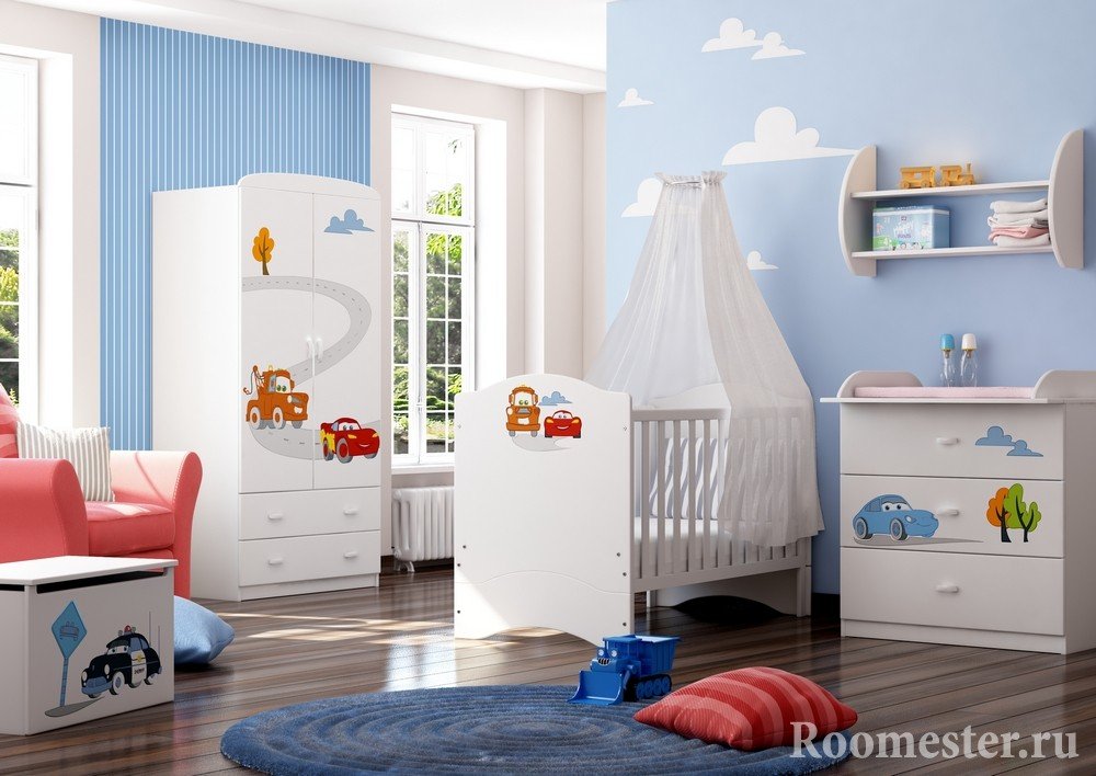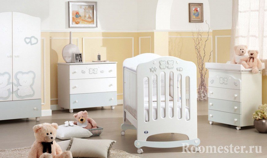 Al principio, el bebé necesita un mínimo de muebles, sin embargo, en el futuro será necesario adquirir diferentes elementos. Se recomienda desarrollar un diseño de muebles que dure de 4 a 5 años. Primero necesitas comprar:
