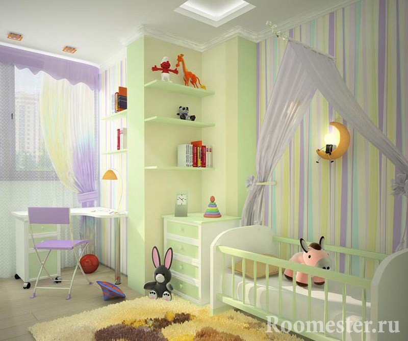 El papel tapiz de vinilo creará una habitación interior atractiva. Cuando el bebé aprenda a caminar, podrá dibujar sobre la superficie de papel liso del papel tapiz. Si no planea rehacer la reparación todos los años, las paredes de la habitación deben terminarse teniendo en cuenta la funcionalidad y practicidad del material. Debe satisfacer las necesidades crecientes del niño.