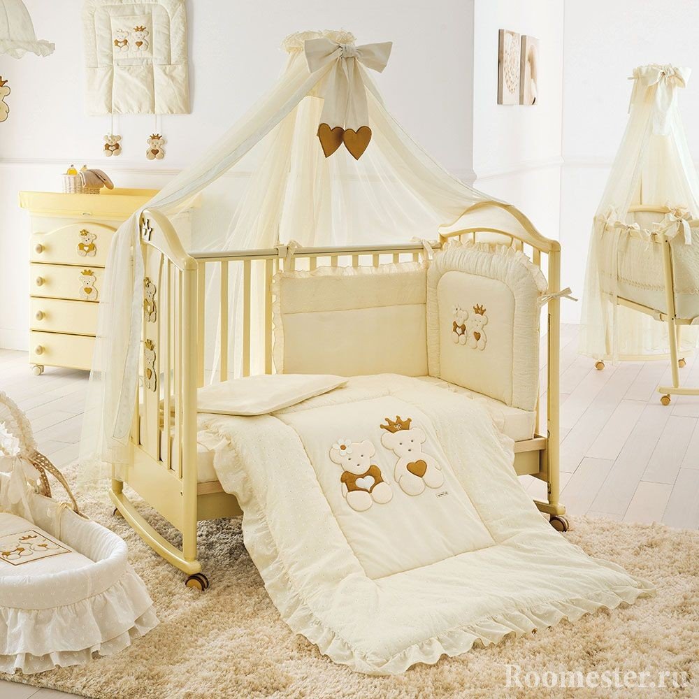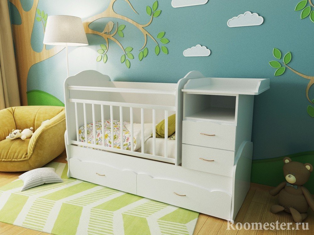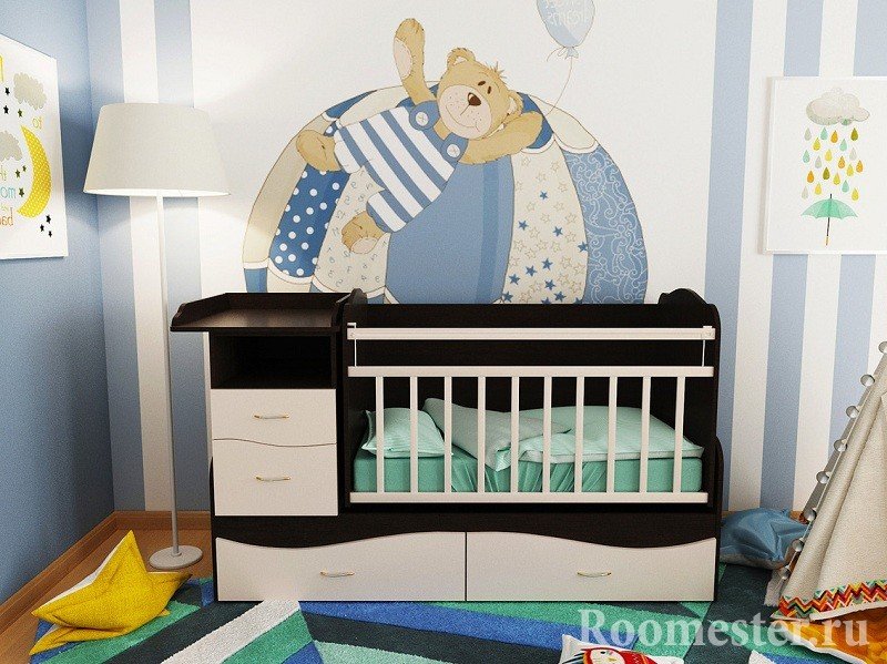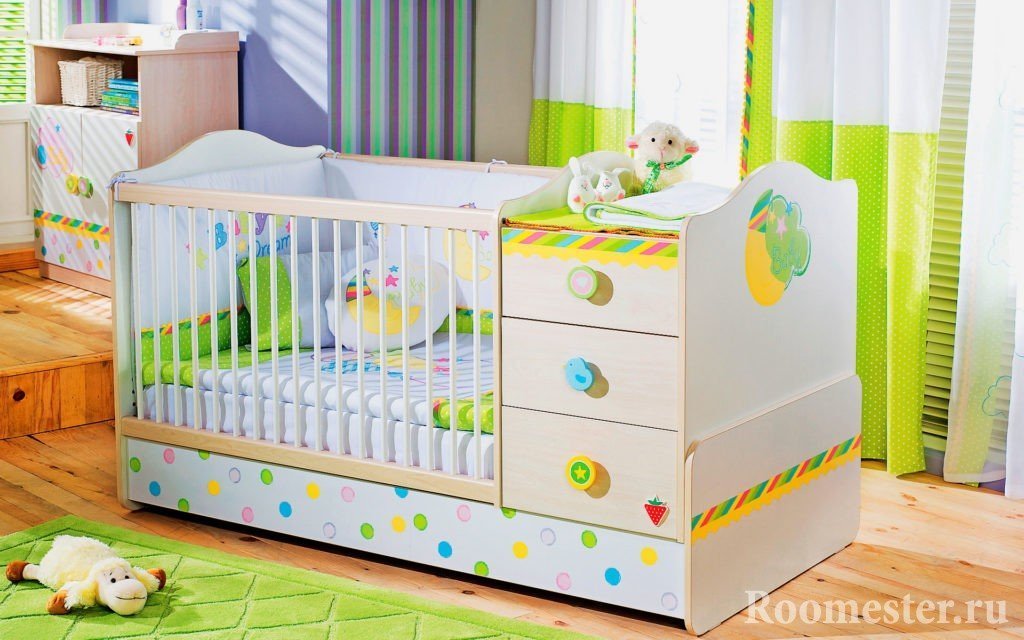 Una cama para el bebé, preferiblemente con un protector extraíble o plegable. Después de unos años, se puede usar con éxito como una cama normal;