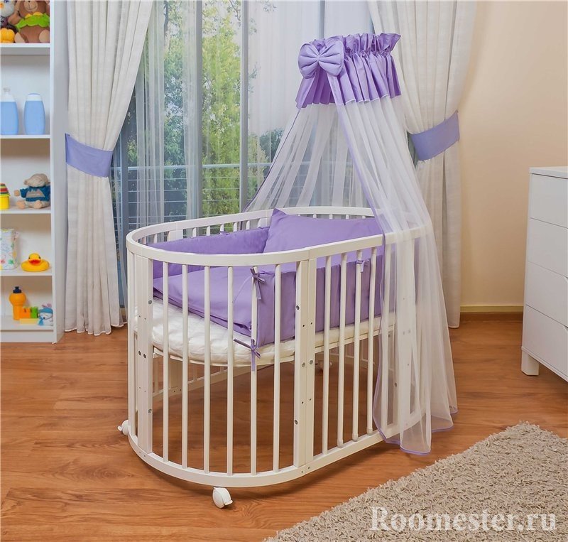 Es mejor que el recién nacido obtenga una cuna compacta. Los primeros 6 meses de vida, el bebé no necesita una litera amplia. En la cuna, no sentirá cambios drásticos y estará cómodamente envuelto desde diferentes lados. Los psicólogos dicen que en una pequeña cuna, el bebé dormirá mucho más tranquilo. Los fabricantes han desarrollado modelos con acompañamiento musical, iluminación suave, un mecanismo de oscilación.Cuando el niño crezca, puede comprar una cuna con parachoques, en la que dormirá hasta 2-3 años.