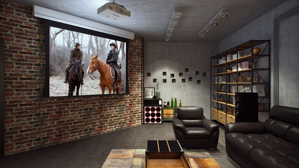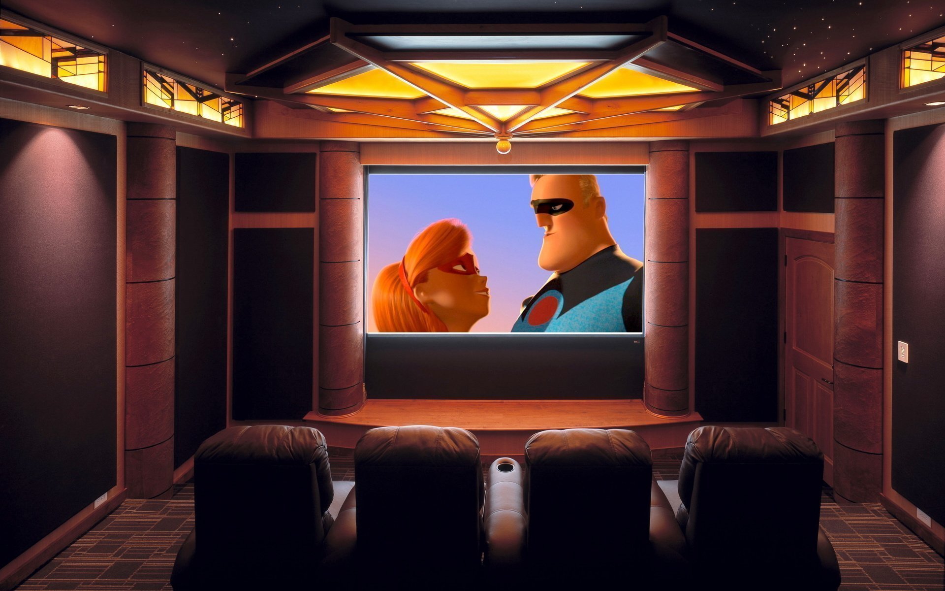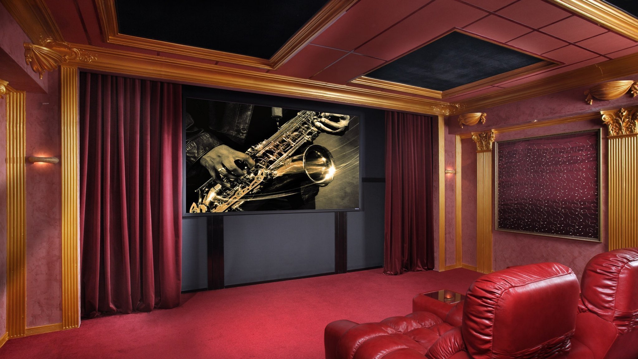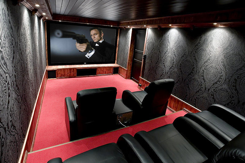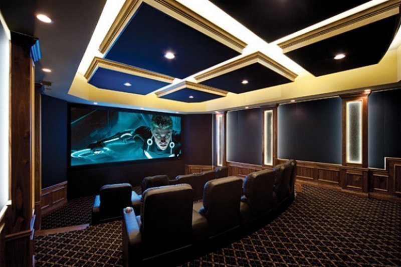 Al diseñar una sala que servirá como cine, vale la pena pegar paredes y techos con un tejido acústico especial, que se vende en rollos.