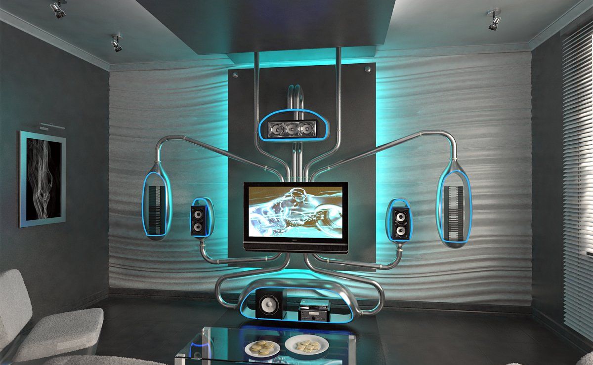 El proyecto del diseño futuro del cine debe basarse en las características técnicas de la sala. Esto se debe a la acústica: para mantener la calidad del sonido en el nivel adecuado, debe pensar de antemano en la disposición correcta de los altavoces, teniendo en cuenta la forma y las paredes de la habitación.