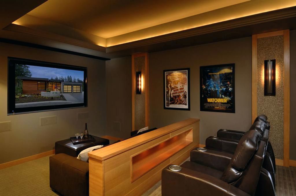 La disposición de un cine en casa en el sótano de un edificio a menudo requiere cálculos matemáticos reales que los especialistas pueden hacer. Por lo general, esto se debe a la altura de los techos y la forma de la habitación, que afectan directamente la reverberación del sonido. La instalación irreflexiva de los altavoces puede arruinar por completo la impresión de la película.