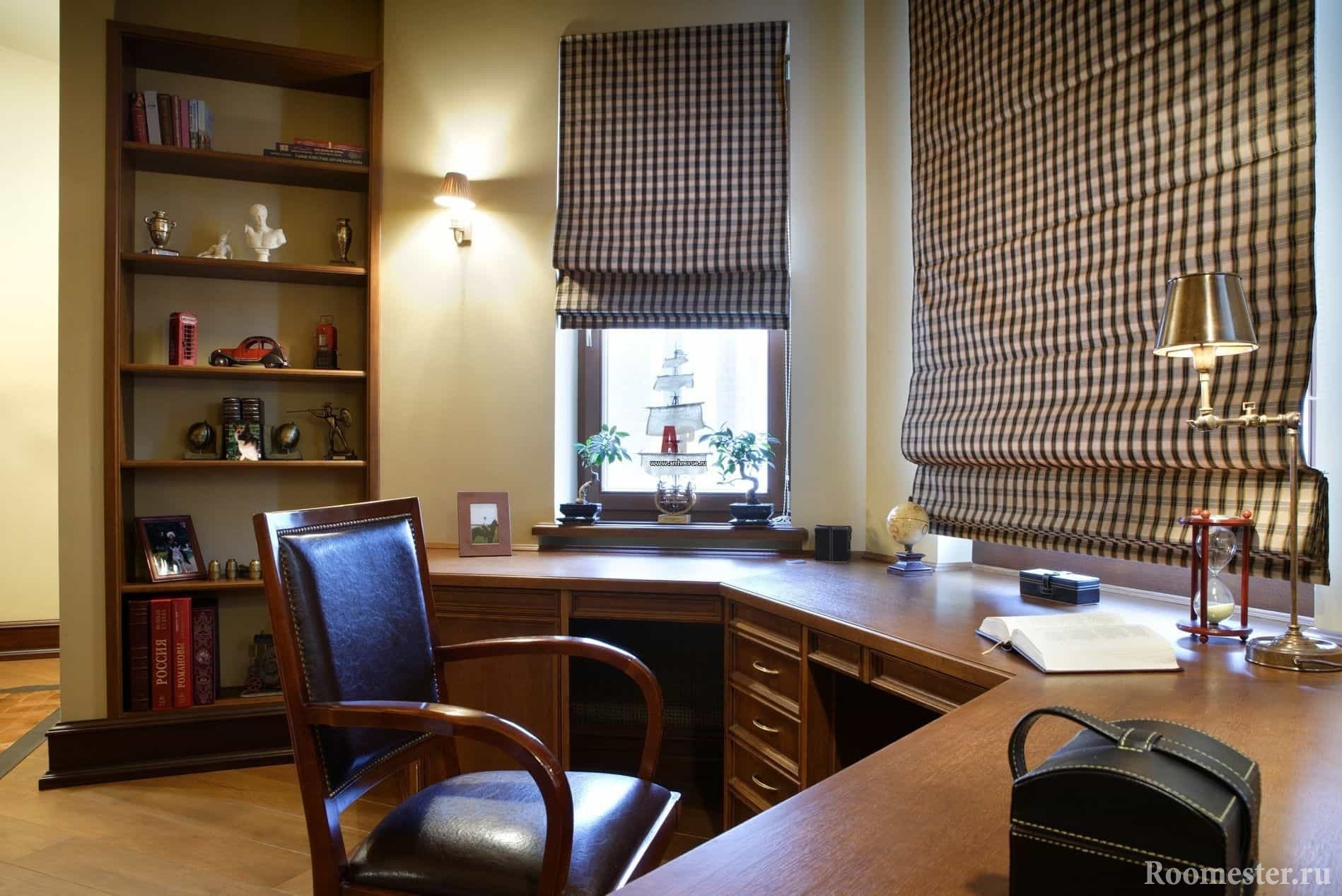 Estilo ruso Tradicionalmente conserva los signos por los cuales se recordaba la oficina de una persona ocupada del período soviético. Este mobiliario masivo, decoración tradicional, una gran cantidad de estantes y armarios, la severidad del estilo.