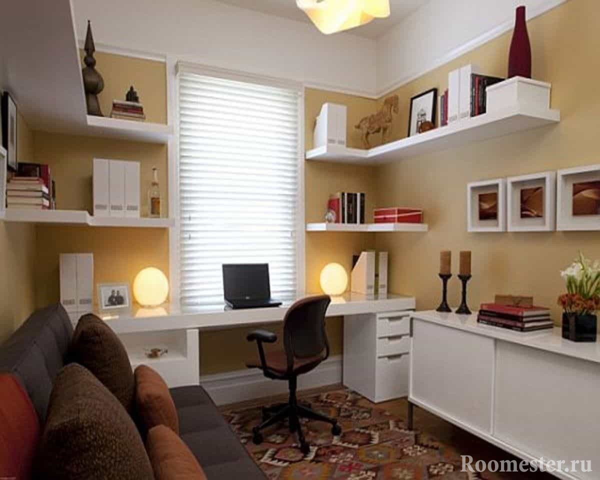 Al organizar los muebles, debe tener en cuenta el estilo y el diseño de una oficina pequeña.