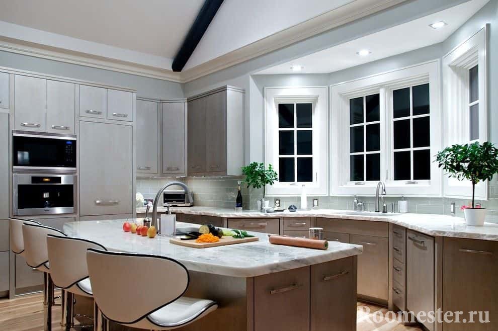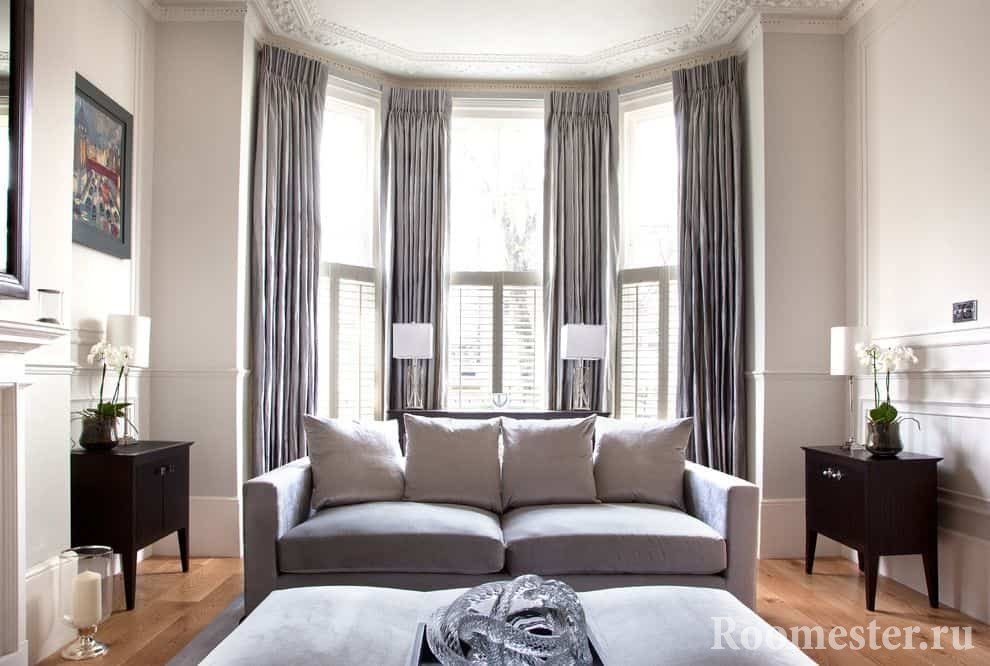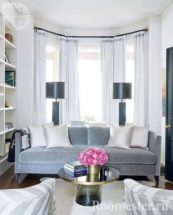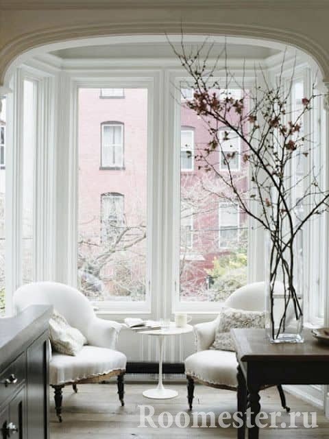 Al resaltar una ventana salediza con un arco, uno debe recordar que dicho diseño no debe ser demasiado voluminoso y grande. Como se mencionó anteriormente, una ventana salediza es, en primer lugar, una fuente de espacio adicional e iluminación para una habitación. Y si instala un arco que lo cierra por completo, todas las ventajas de dicho diseño quedarán en nada.