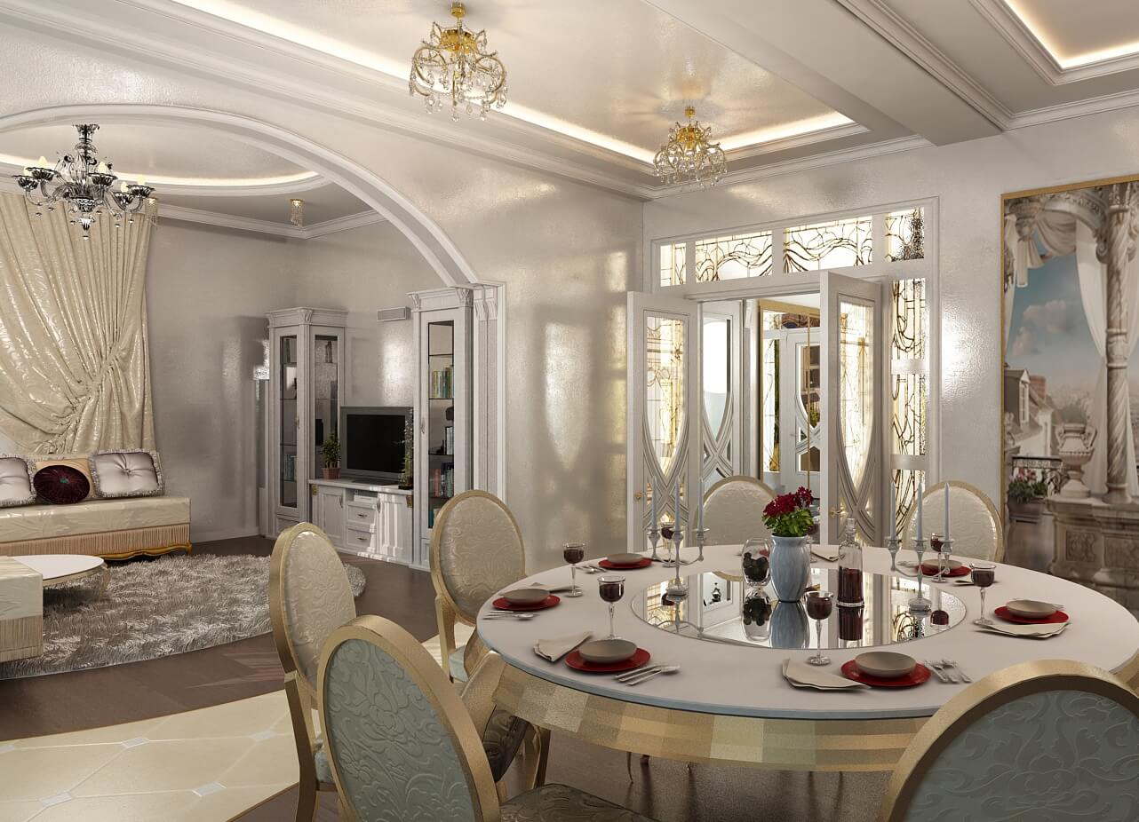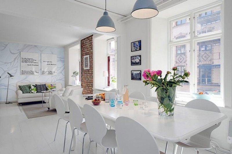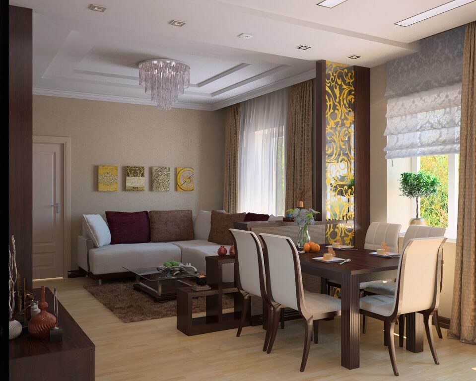 Las cocinas pequeñas se convierten en la razón principal para hacer que el comedor fuera de la habitación, directamente relacionado con la comida. Una habitación separada para comer se considera un lujo que solo los propietarios de casas privadas pueden permitirse, pero no los propietarios de pequeños apartamentos en Jruschov. Los propietarios de salas de estar espaciosas tuvieron suerte, ya que se pueden combinar con cualquier plataforma necesaria, que no es posible equipar en una habitación separada. Comience a trabajar con el proyecto. Es mucho más fácil desarrollarlo para la sala de estar y el comedor, ya que ambas habitaciones tienen un propósito funcional similar: relajación para el cuerpo y el alma. El comedor puede convertirse en el acento de la habitación, su entusiasmo o fondo, que sombrea de manera competente la plataforma principal. El diseño orgánico del salón comedor es bastante difícil de crear. La tarea solo a primera vista parece fácil, pero de hecho incluye una serie de matices, sin los cuales la situación parecerá inacabada o "cegada" de prisa.