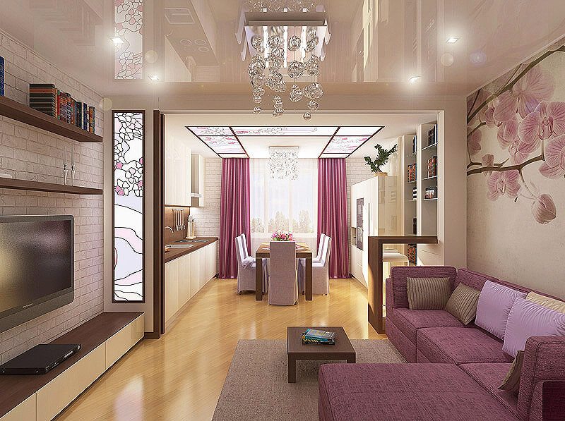 La combinación de la sala de estar y el comedor es una combinación orgánica de habitaciones de espíritu similar. Ahora será mucho más fácil celebrar vacaciones conjuntas: ya no tendrá que mover la mesa de la cocina. Las cenas aburridas disiparán la televisión, que se encuentra a poca distancia. Finalmente, puede comenzar sus propias tradiciones gastronómicas (en familias numerosas), porque ahora no tiene que acurrucarse en una habitación estrecha e incluso puede organizar una mesa redonda. Los comedores separados son el destino de los propietarios de las casas de campo y los "chic" inaccesibles para los habitantes. En condiciones de déficit espacial, uno tiene que encontrar constantemente soluciones no estándar a los problemas. Los estudios y las habitaciones combinadas se relacionan con opciones prácticas pero prácticas.