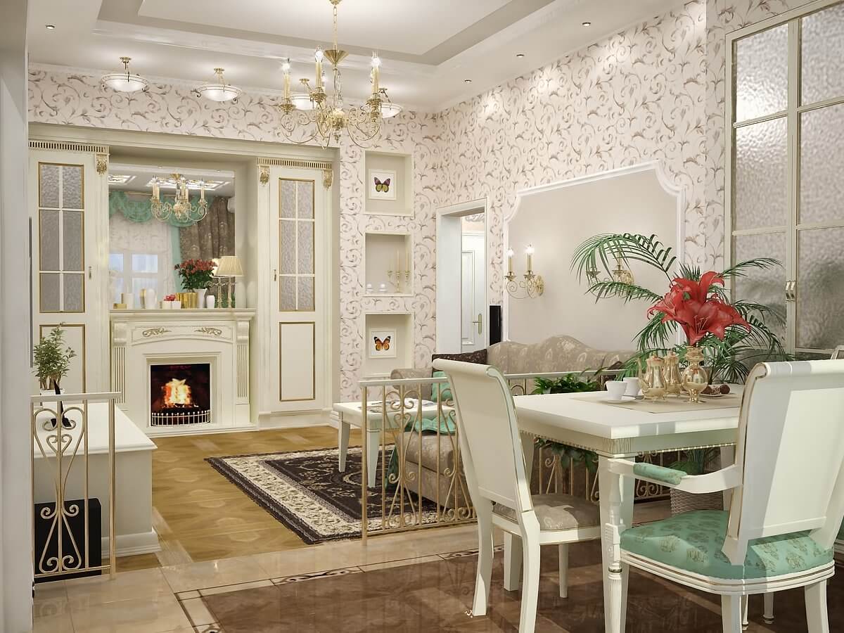 Entre la variedad de estilos, elija uno que cumpla con las preferencias estéticas de los propietarios y persiga los objetivos "correctos" desde su punto de vista. Para personas estrictas y moderadas, se recomiendan direcciones similares: minimalismo, constructivismo, alta tecnología. Los partidarios de la sala de estar-comedor de lujo "tranquila" están diseñados de acuerdo con los principios de los clásicos, art deco, loft. Para aquellos que ponen la comodidad por encima de la belleza y buscan constantemente opciones "promedio", la fusión, el country y el boho son adecuados. La elegancia pesada encarna perfectamente el estilo barroco, italiano y el art nouveau. La combinación de practicidad y precios bajos son kitsch y pop art. Aquellos a quienes les gusta mirar hacia el futuro apreciarán el futurismo y el post punk. Las naturalezas románticas se sentirán a gusto en una habitación combinada, decorada en estilo provenzal o marino. Cada una de las instrucciones está sujeta a principios especiales. Por ejemplo, en el estilo escandinavo, es necesario tener una chimenea en la habitación, que la "calentará", no solo en el sentido literal de la palabra, sino también en una figura (los colores fríos siempre prevalecen en las sombras). En el diseño clásico, la habitación tendrá una gran cantidad de lujosas decoraciones, cuyo objetivo principal es mostrar el estado de los propietarios y su capacidad para comprender cosas caras. El diseño interior del salón-comedor en minimalismo obedece las leyes del racionalismo y la practicidad. Esta dirección está tratando de reflejar el contenido espiritual ordenado de una persona en un apartamento. Hi-tech ama todo lo ultra nuevo y moderno. Los electrodomésticos, que en cualquier otro estilo jugarían un papel secundario, se destacan y se convierten en una decoración elegante.