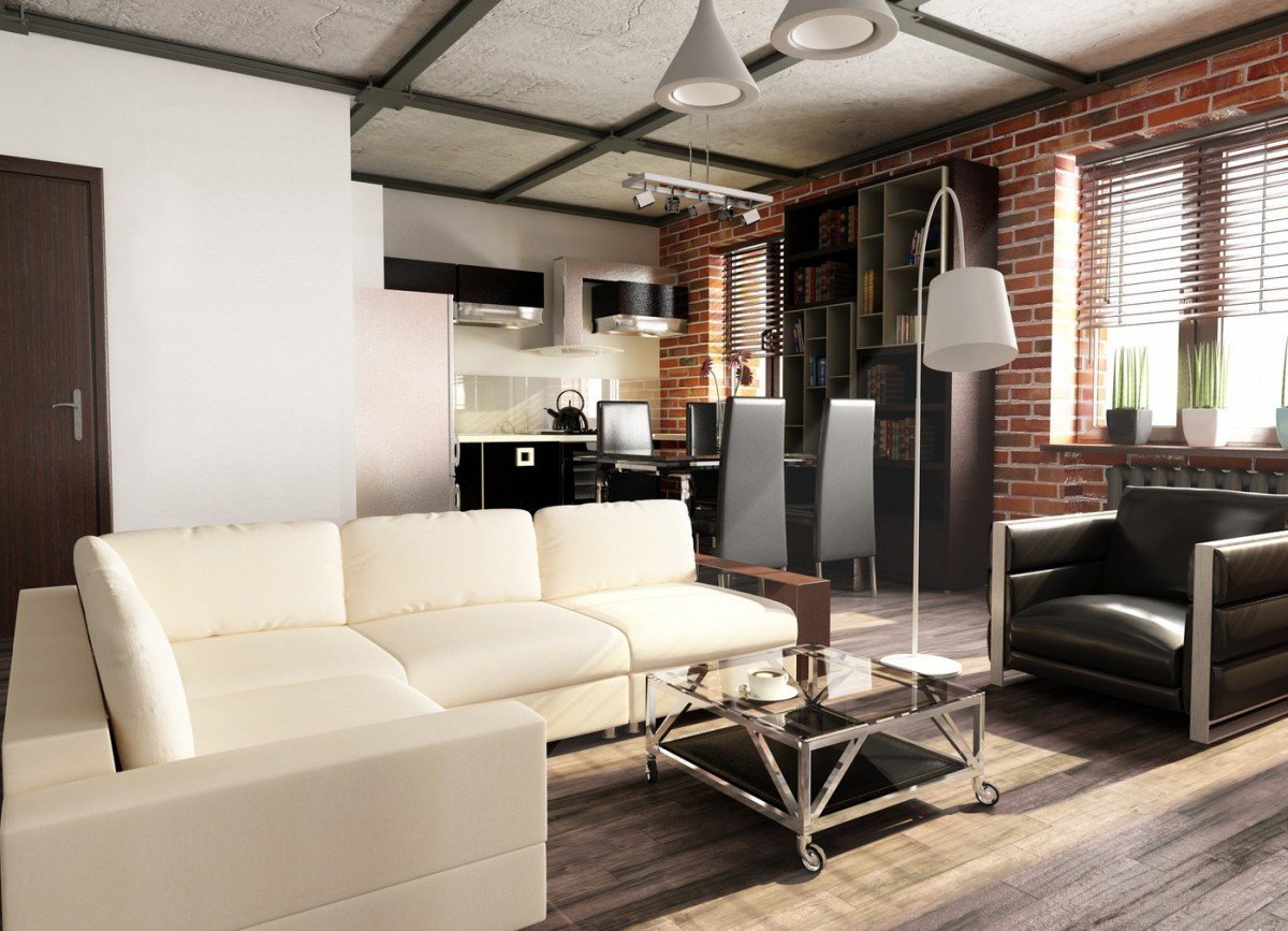 Loft es considerado el producto de la urbanización. Combina detalles, una combinación de los cuales era imposible imaginar antes. Las gruesas paredes de ladrillo se alternan con estuco liso blanco como la nieve. El techo está decorado con vigas de madera. No hay cortinas en las ventanas; son reemplazadas por persianas prácticas.El estudio de la sala de estar literalmente se baña en iluminación artificial, que se organiza en tres niveles. Los electrodomésticos y muebles modernos se fusionan orgánicamente en la composición. Comunicaciones puestas en exhibición pública. Se convierten en un elemento decorativo. Loft pertenece al grupo de estilos de élite que son adecuados para el diseño de mansiones suburbanas.