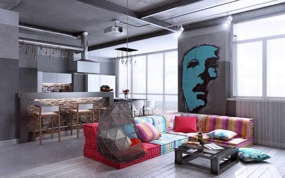 La zonificación basada en contrastes juega con la psicología de las personas. La percepción del color separará automáticamente inmediatamente una zona de otra. Efecto mejorado decoración combinada. La combinación de diferentes texturas incluso hará que las zonas sean más "independientes". Por ejemplo, una combinación de estuco en relieve con aspecto regular y suave de forma orgánica. La pintura ligera con papel tapiz delicado también se ve bien. El loft combina ladrillo o mampostería con yeso.Los contrastes de color pueden ser brillantes, lo que se permite solo en habitaciones espaciosas, o suaves, con una transición suave.