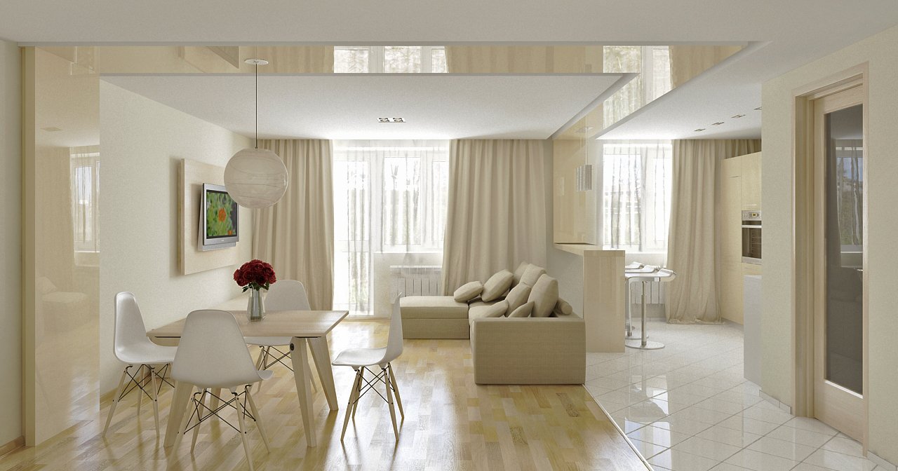 No se recomienda combinar habitaciones que contrasten en funcionalidad con el uso de límites condicionales. Por ejemplo, un dormitorio y una sala de estar: las habitaciones tienen una atmósfera y un propósito de uso opuestos. En el primero descansan en silencio, y en el segundo con ruido. En consecuencia, es imposible distinguir entre zonas de luz o un podio, ya que quedarse dormido en presencia de una compañía de invitados no funcionará.
