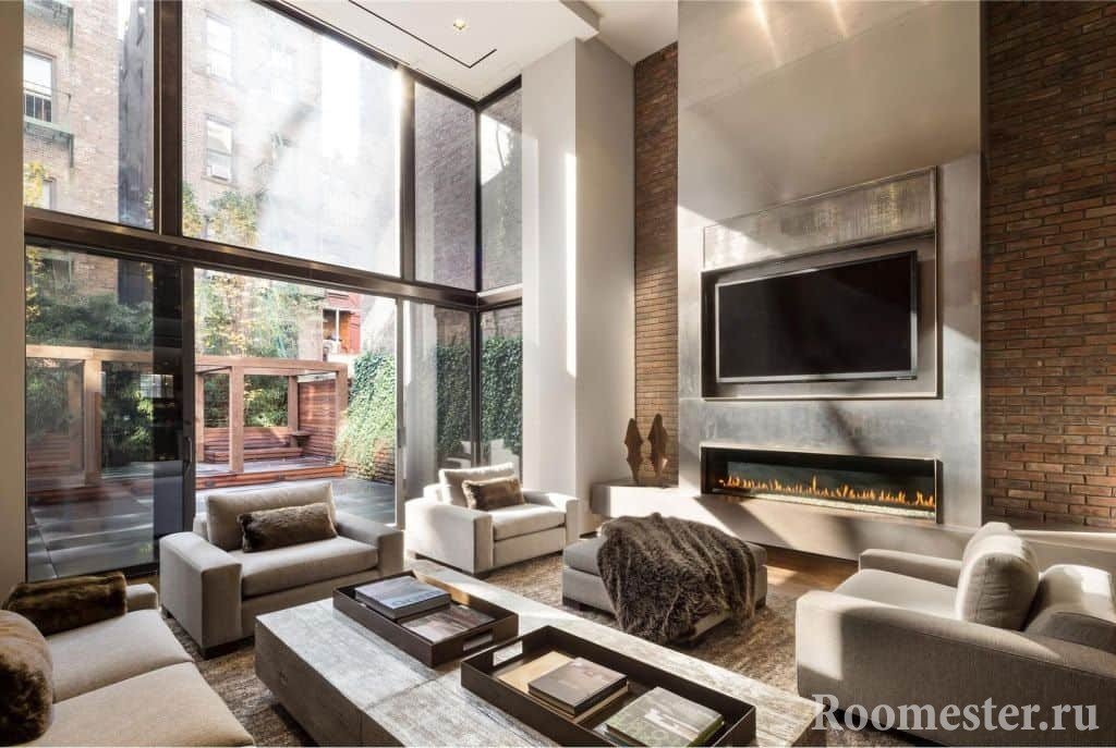 Hoy en día, el interior de la sala de estar con chimenea se ha convertido en un símbolo característico de la comodidad de las casas individuales, un ambiente romántico, mientras desempeña un papel de estatus: el propietario de la chimenea, sin duda, una persona exitosa y de mentalidad moderna.