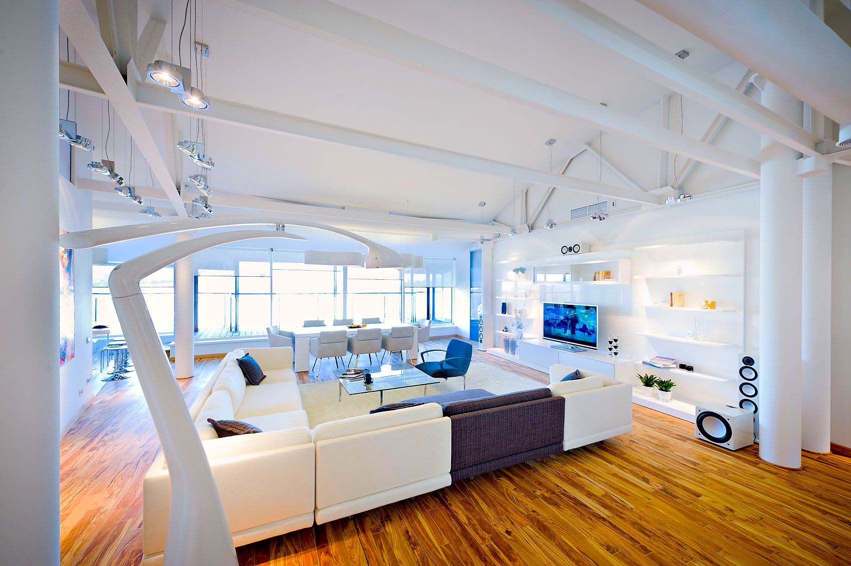 La historia de la alta tecnología comenzó en la arquitectura en los años 70 del siglo pasado, y luego se convirtió gradualmente en diseño. La dirección, en contraste con la línea de estilos clásicos, comenzó a considerar la tecnología como un tema de decoración y armoniosamente encajó las bendiciones del siglo de la tecnología digital en el entorno. La alta tecnología está estrechamente asociada con el loft y el minimalismo. Los tres estilos tienen ciertas similitudes, lo cual no es sorprendente, porque los conceptos de tendencias cumplen con los requisitos del hombre moderno. La alta tecnología es más adecuada para decorar casas privadas de lujo.